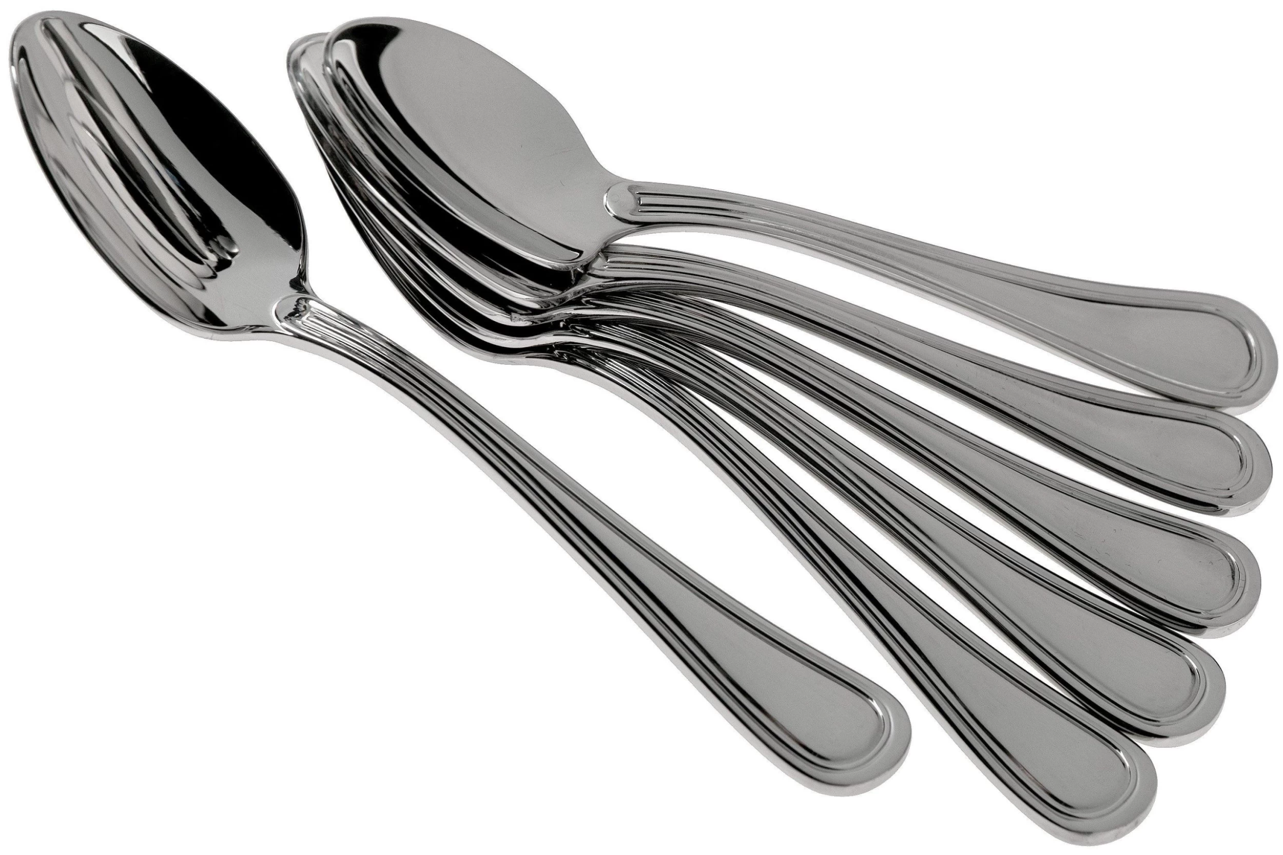 La ménagère Amefa Cambridge est issue de la collection Premiere. Ici, la qualité se pare de designs exclusif et se marie à la fonctionnalité. Le modèle Cambridge est orné de fines décorations. Cette collection a été réalisée avec beaucoup de soin et de précision en chrome-nickel, plus connu sous le nom d’acier inoxydable 18/10. Cette collection est donc très résistante à la rouille et aux tâches. Ces modèles sont parés d’une finition très brillante, ils peuvent donc aller au lave-vaisselle.