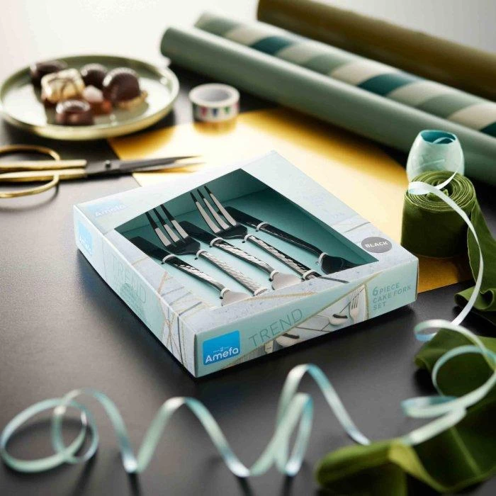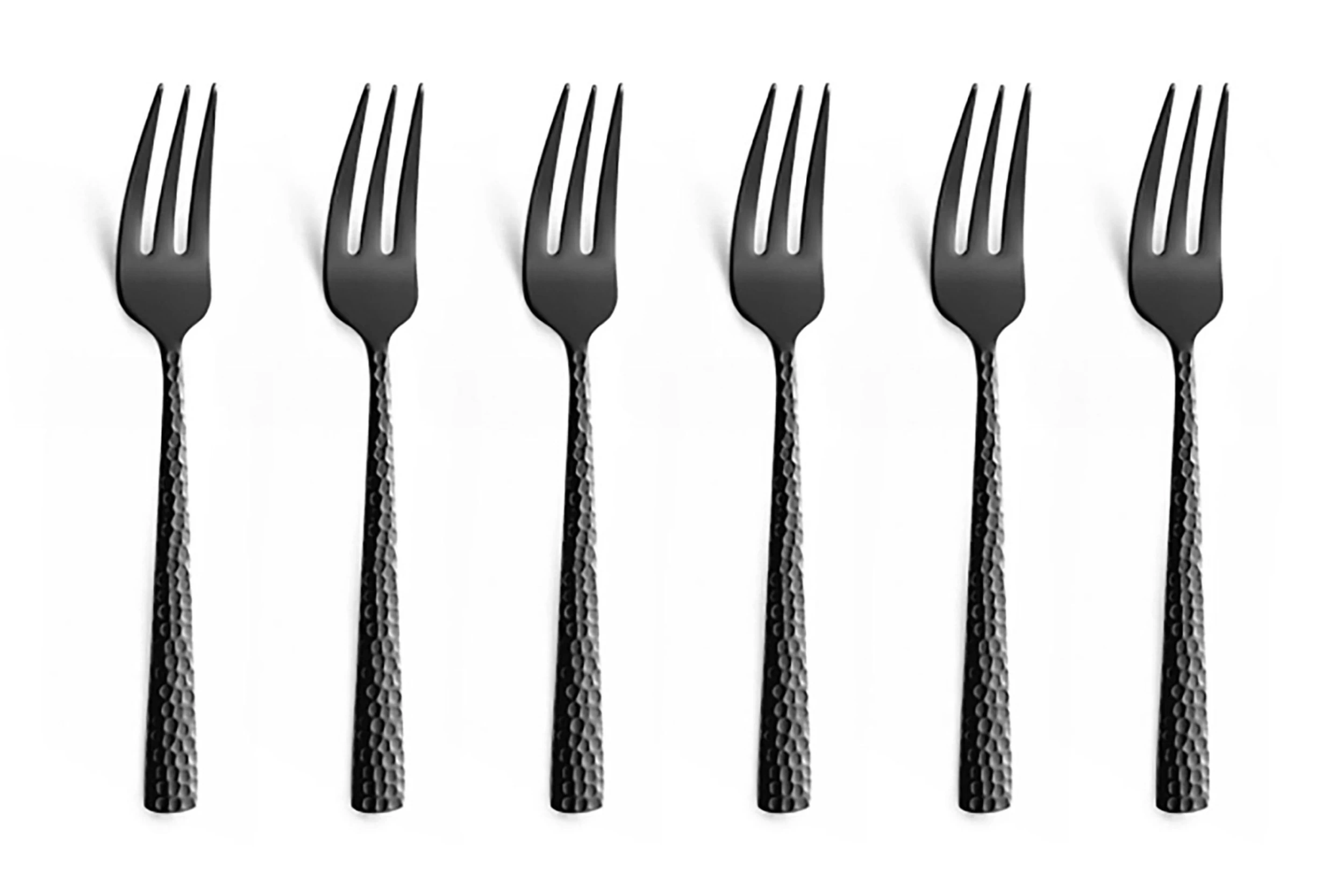 Affirmez votre style avec le set de 6 fourchettes à dessert Amefa Felicity 3319. Il s’agit d’un set de fourchettes à dessert au look élégant mais brut, grâce à leur finition noire brillante et à la décoration martelée sur le manche. Elles sont en acier inoxydable 18/0 avec un revêtement fin en titane PVD (Physical Vapor Deposition).
