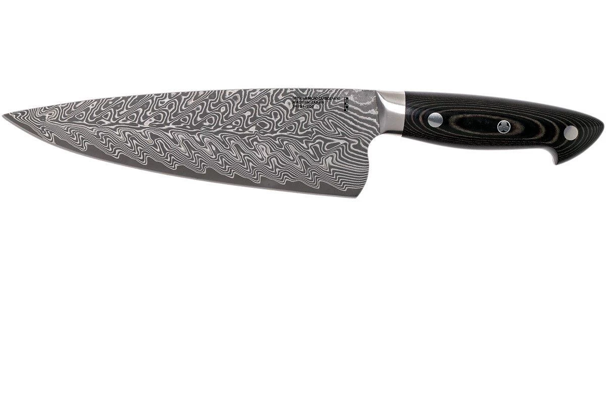 Le Bob Kramer by Zwilling Euro Stainless couteau de chef 20 cm impressione par le magnifique motif de sa lame. Avec une longueur de 20 cm et un manche robuste, ce couteau est incroyablement confortable. La lame est aiguisée sur toute sa longueur vous permettant de l’exploiter au maximum. En raison de la longueur et la hauteur de la lame, vous pouvez facilement couper vos viandes, poissons, légumes et fruits mais aussi vos herbes et gousses d’ail. Ce couteau n’a qu’un seul but : une qualité de coupe sublime.