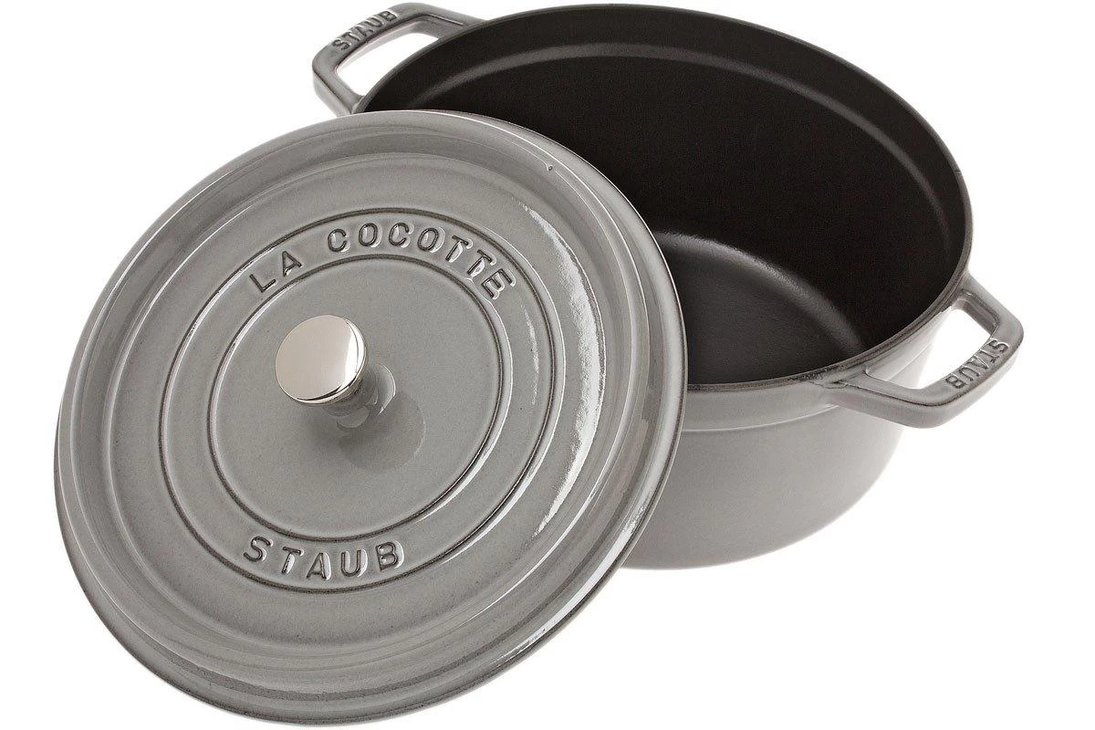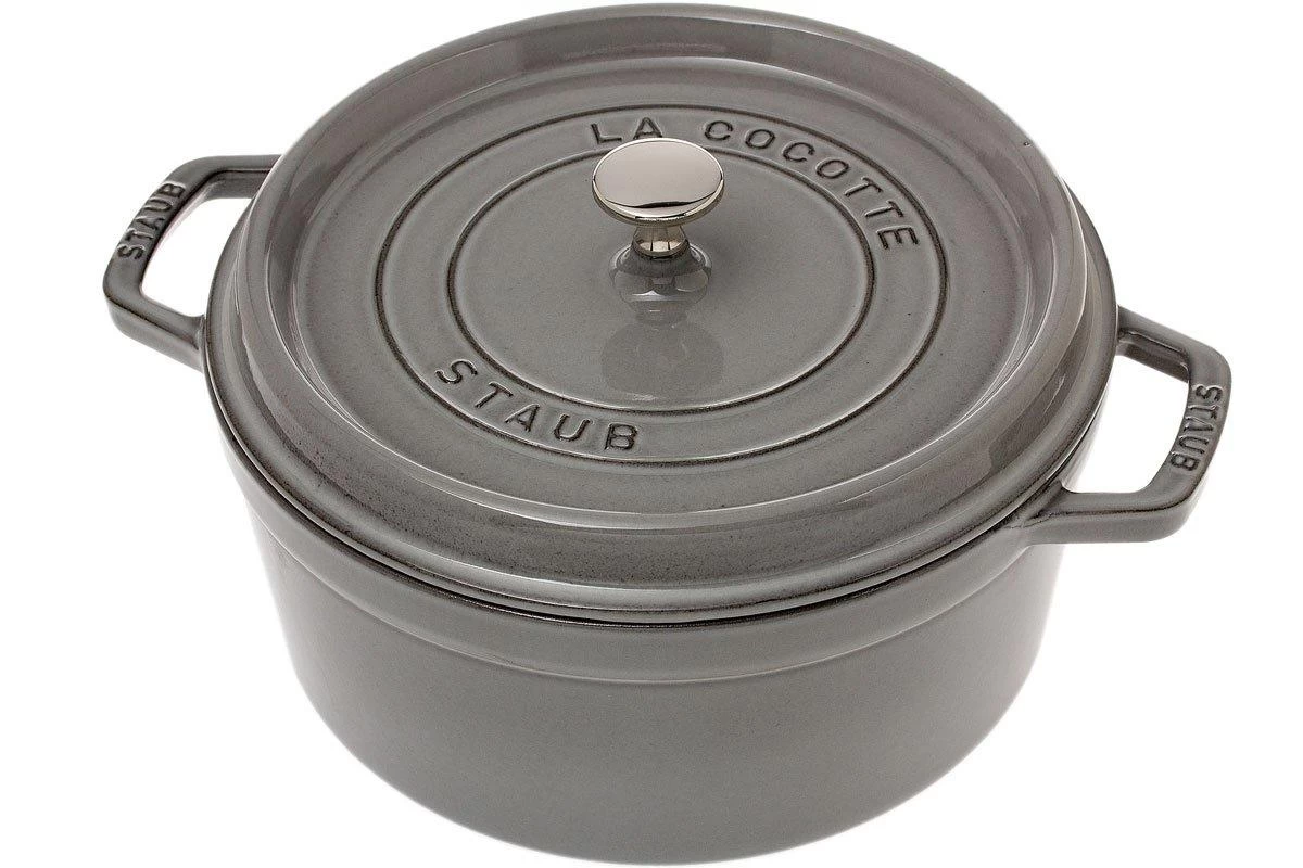Cette cocotte Staub est en fonte massive. La fonte est connue pour son excellente répartition de la chaleur et ce, de manière progressive et uniforme. Une fois la fonte chaude, la température peut être baissée. L’inverse fonctionne également, la poêle reste froide pendant longtemps. Vous pouvez donc vous en servir pour servir de bons plats frais d’été tous droits sortis du réfrigérateur. Ces propriétés font des poêles en fonte les ustensiles idéaux pour saisir et rôtir.