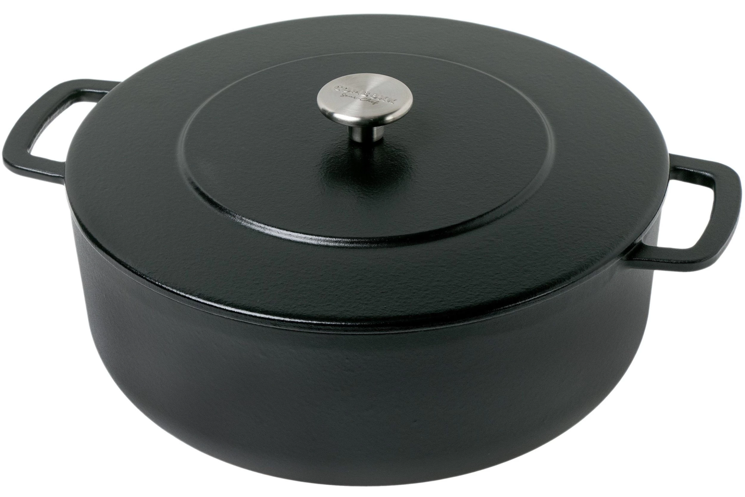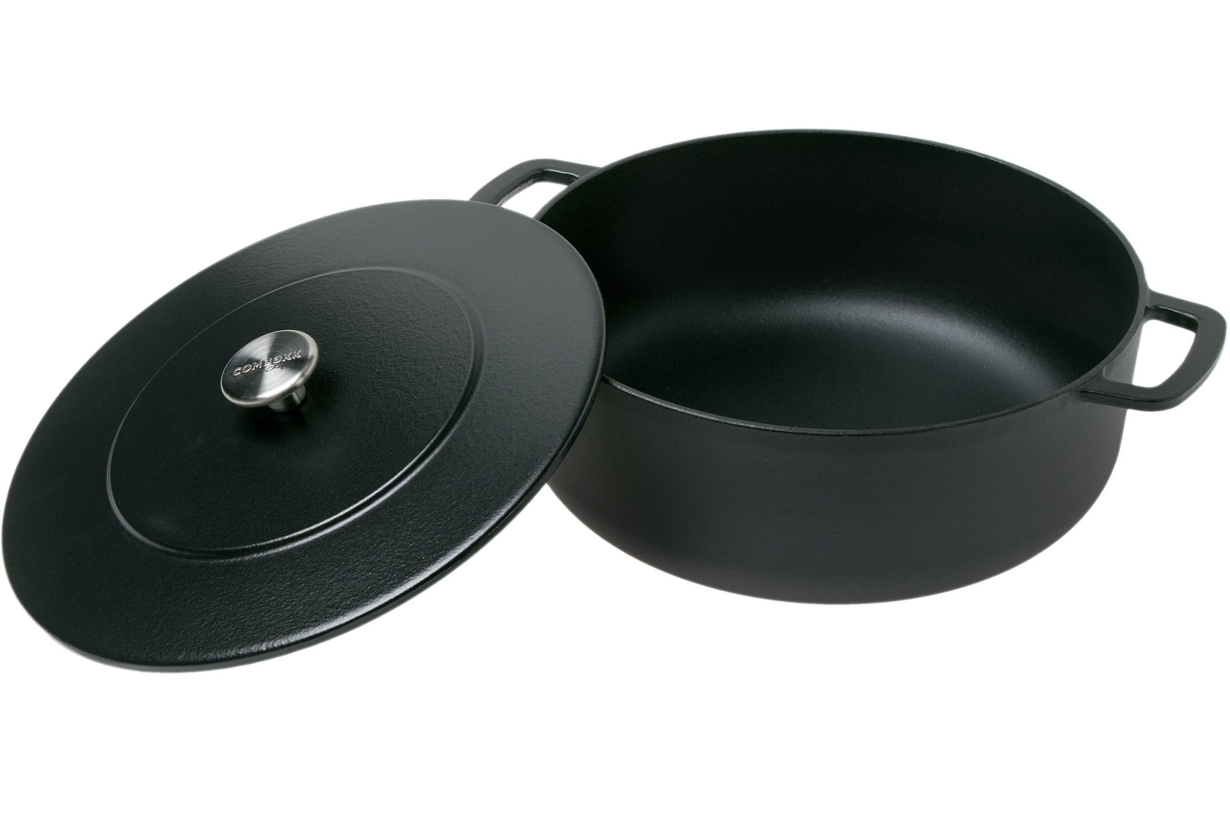 Ce Combekk Sous-Chef Dutch Oven 28 cm noir est un produit typiquement Hollandais très spécial. Une fonte de qualité, pour un design indémodable et un produit durable. Cette poêle solide en fonte vous permet de préparer toutes sortes de plats. Cuire, rôtir ou même frire : tout est possible. La fonte reste à température pendant longtemps. Que ce soit à température élevée ou basse. Cette poêle est donc également appropriée pour garder vos plats au frais dans le frigo ou dans le congélateur. Une fois la fonte refroidie, vous pouvez utiliser votre poêle pour servir vos entrées lors d’une chaude journée d’été. Le lourd couvercle s’adapte parfaitement sur la cocotte afin de préserver les saveurs, le jus et l’humidité. La poignée du couvercle est en aluminium afin de pouvoir l’utiliser dans le four.