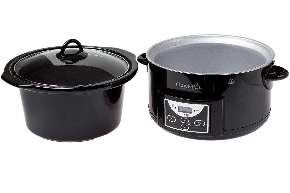 Le slowcooker Crock-Pot CR057 de la gamme Premium a une capacité de 4,7 litres pour la préparation de plat pour 4 à 6 personnes. Le Crock-Pot CR507 dispose de deux positions de cuisson, une position de maintien au chaud et une minuterie numérique programmable. La température maximale de 96 degrés est toujours atteinte. Cela va plus ou moins vite selon la position. Le timer est programmable jusqu’à 20 heures. Vous pouvez alors décider du moment où vous voulez que votre plat soit prêt. Le réglage automatique du maintien au chaud empêche le tout de refroidir. Tout le monde peut donc manger à tout moment.