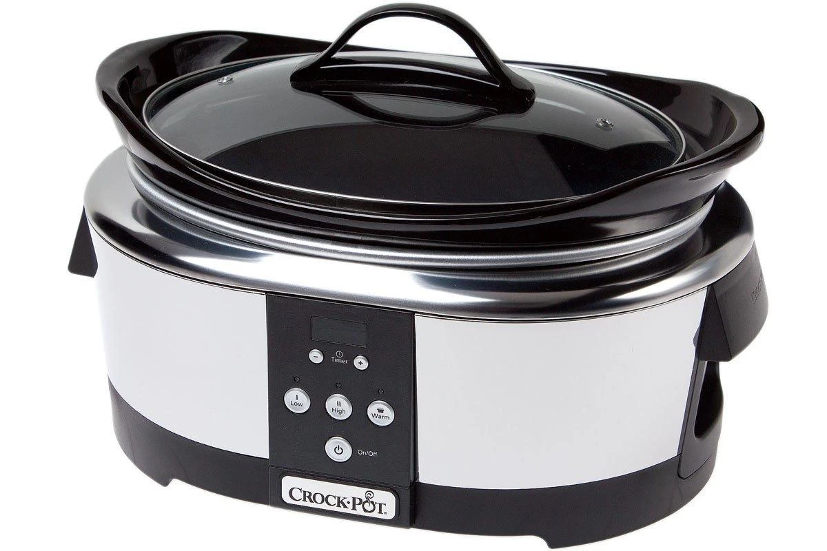 Le slowcooker Crock-Pot CR605 a une capacité de 5,7 litres et peut donc contenir un repas pour sept personnes. La marmite est amovible afin d’être utilisées dans le four. Cela vous permet de donner du croquant à votre plat en le passant au four pour les dernières minutes de cuisson. Attention : le couvercle ne doit jamais être placé dans le four. La poignée en plastique va fondre.