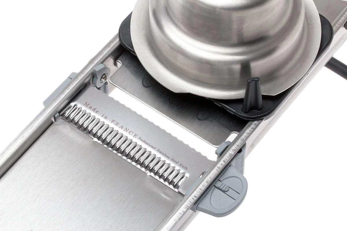 La mandoline DeBuyer Revolution est robuste et polyvalente. Le cadre en acier inoxydable est très stable et est facile à nettoyer. Tranches, gaufrettes, cubes, bandes ou losanges : cette mandoline peut tout faire. Sa limite ? Votre imagination.