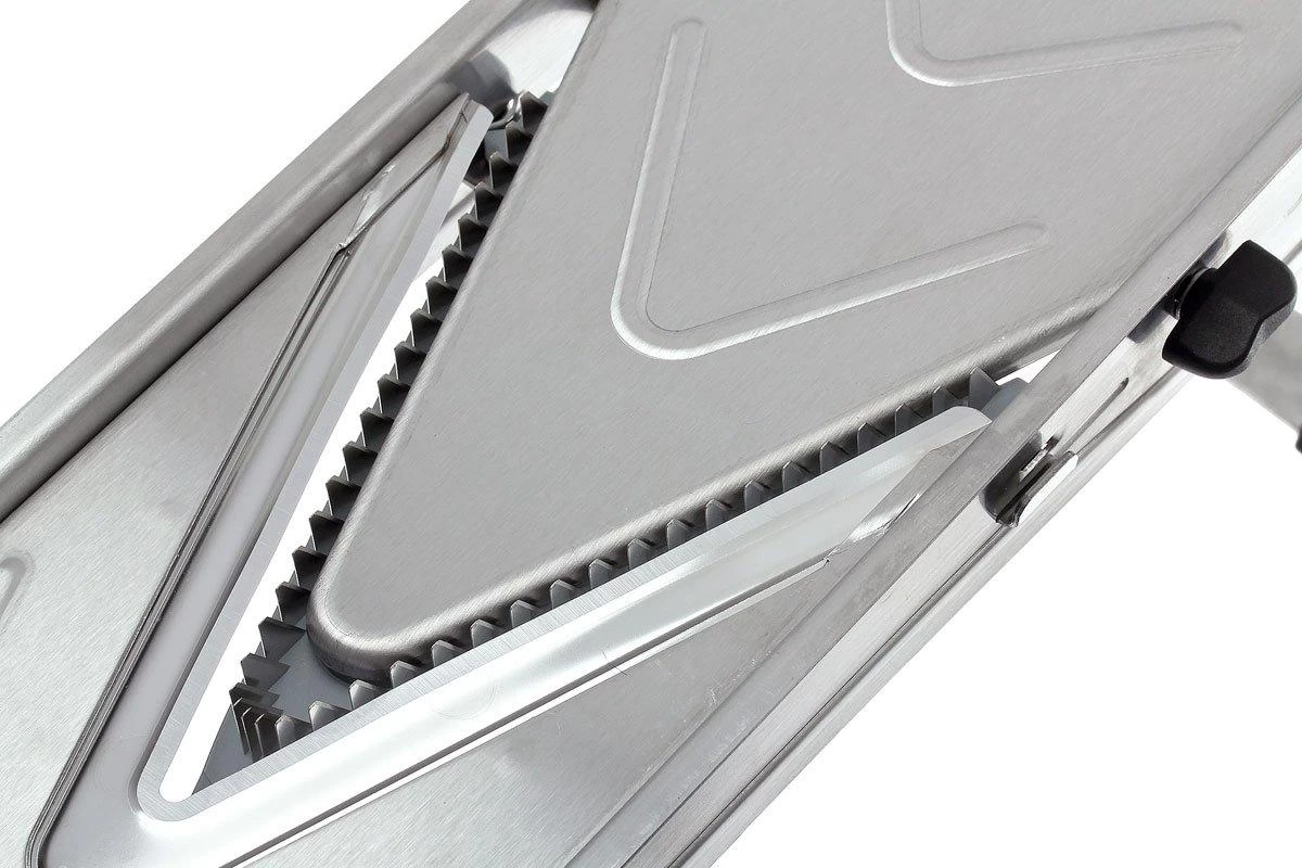 La mandoline de Buyer Vantage est entièrement développée selon les hauts standards de qualité de Buyer et constitue un véritable atout pour toute cuisine. Cette mandoline est Made in France. Le cadre et les lames sont en inox.