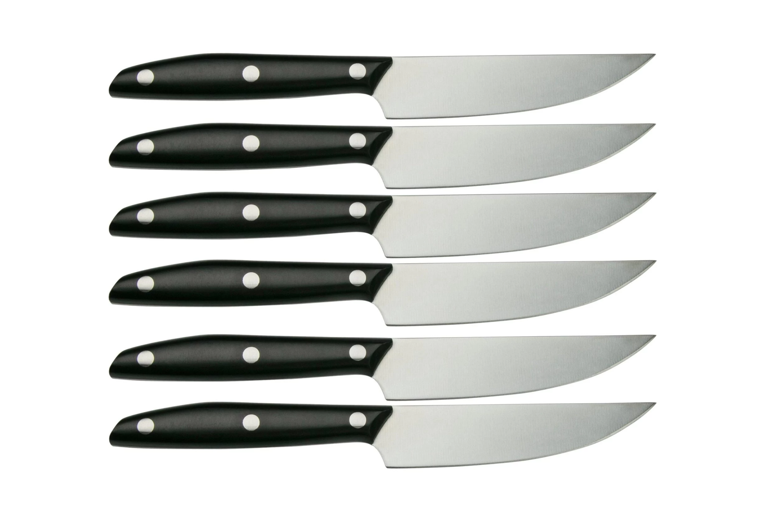 Ce set de 6 couteaux à steak, noir, Due Cigni 1896 America est un set original et élégant. Un bon couteau à steak est indispensable pour les vrais amateurs de viande. Il permet de couper facilement un steak ou un autre morceau de viande sans la déchirer. Le design mince et gracieux permet, en prime, de dresser une superbe table pour impressionner vos invités ! Ce set est livré dans son coffret en bois.