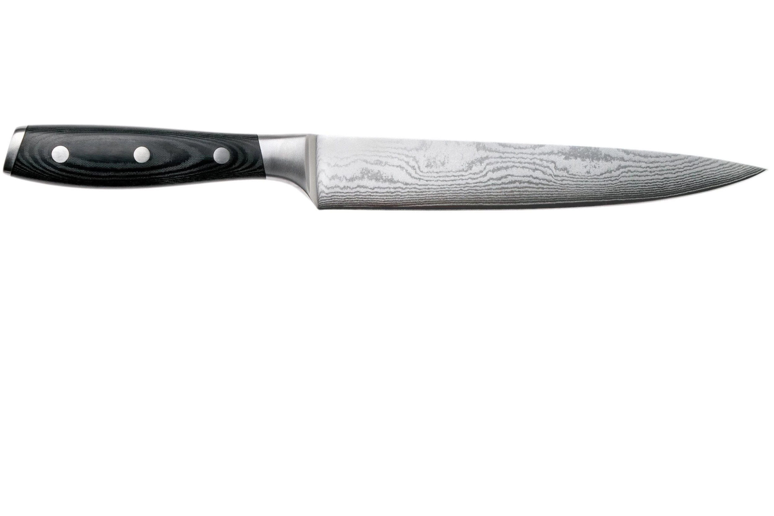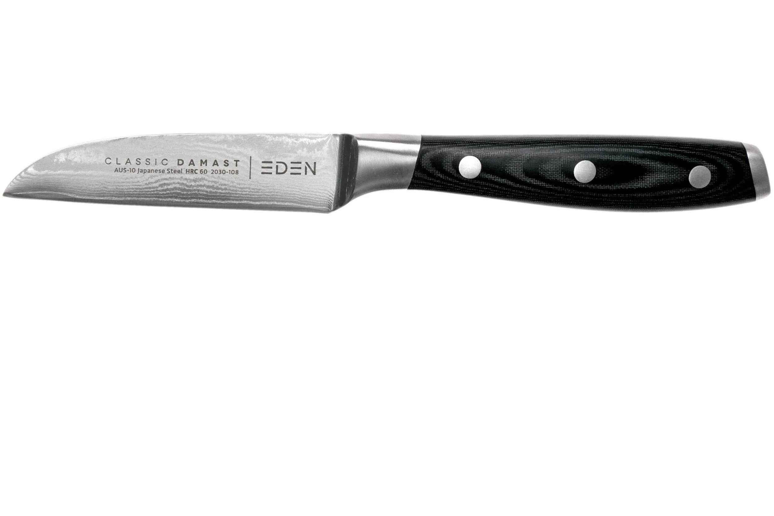 Avec ce set de couteaux trois pièces Eden Classic Damast vous pouvez effectuer une grande partie de vos tâches de cuisine. L’ensemble se compose d’un couteau à éplucher, un couteau de chef et un couteau à viande.