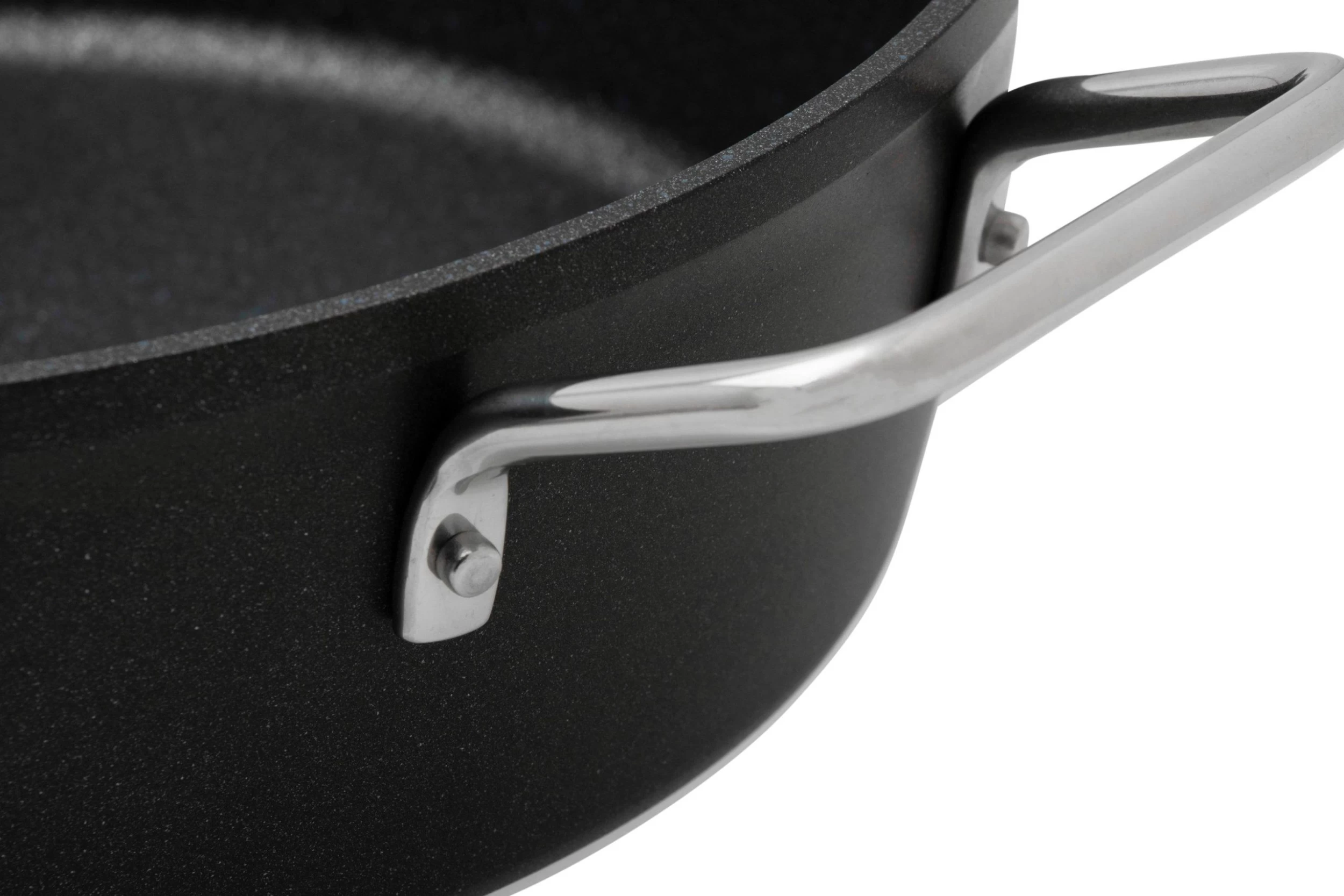 La cocotte Fissler Adamant 28 cm est une grande casserole, assez spéciale. Le revêtement antiadhésif contient du carbure de silicium, ce qui le rend extrêmement robuste et résistant aux rayures. Vos spatules en silicone sont au lave-vaisselle ? Avec les poêles Fissler Adamant, vous pouvez vous servir de vos ustensiles en métal !