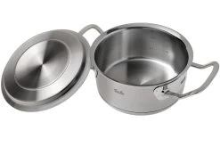 La poêle en céramique 26 cm Fissler Ceratal Comfort est une poêle moyenne et pratique, avec un fond antiadhésif en céramique. Ses bords hauts et droits permettent de retourner les aliments facilement et optimisent la surface de cuisson. De quoi préparer des quantités importantes dans une poêle relativement petite !