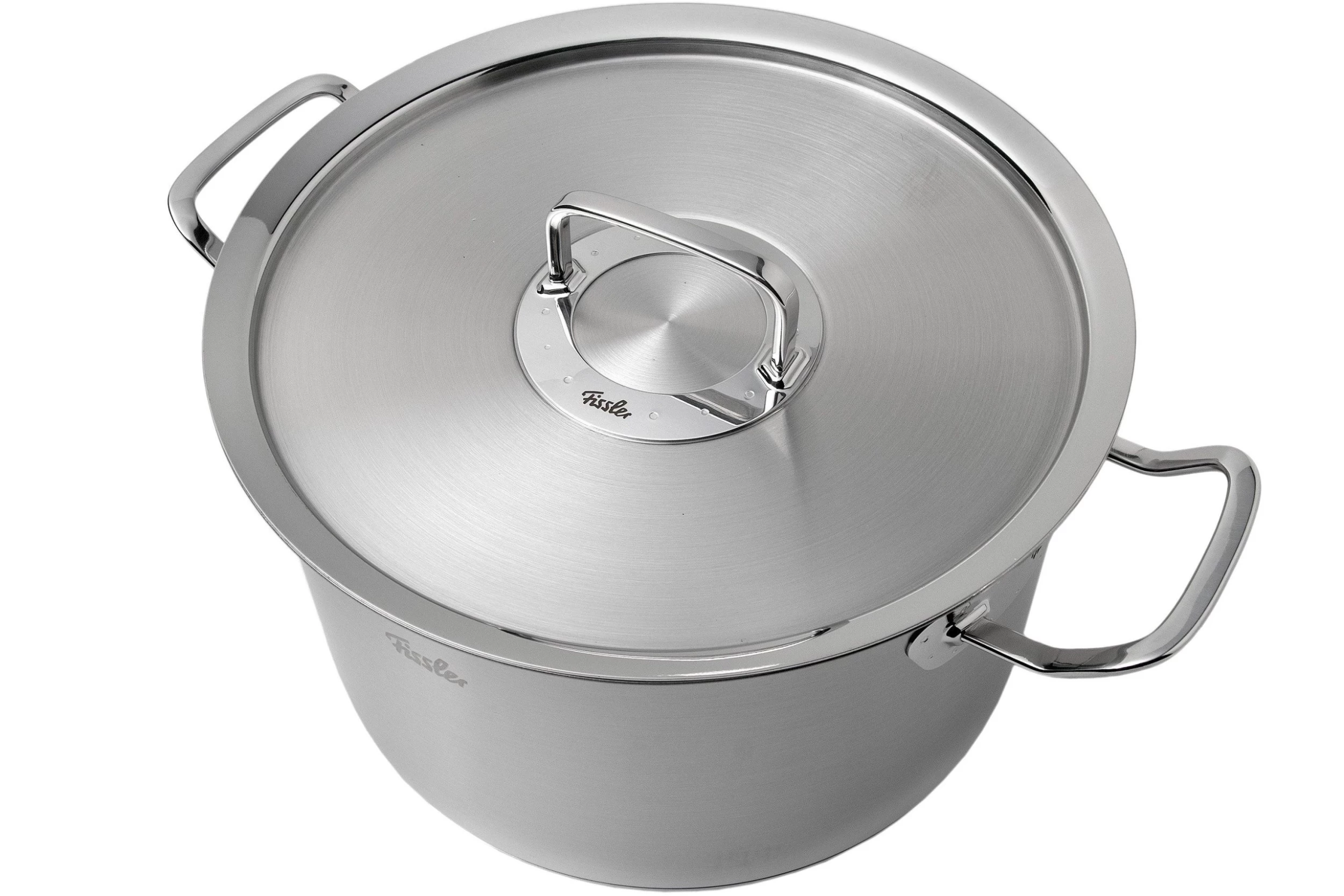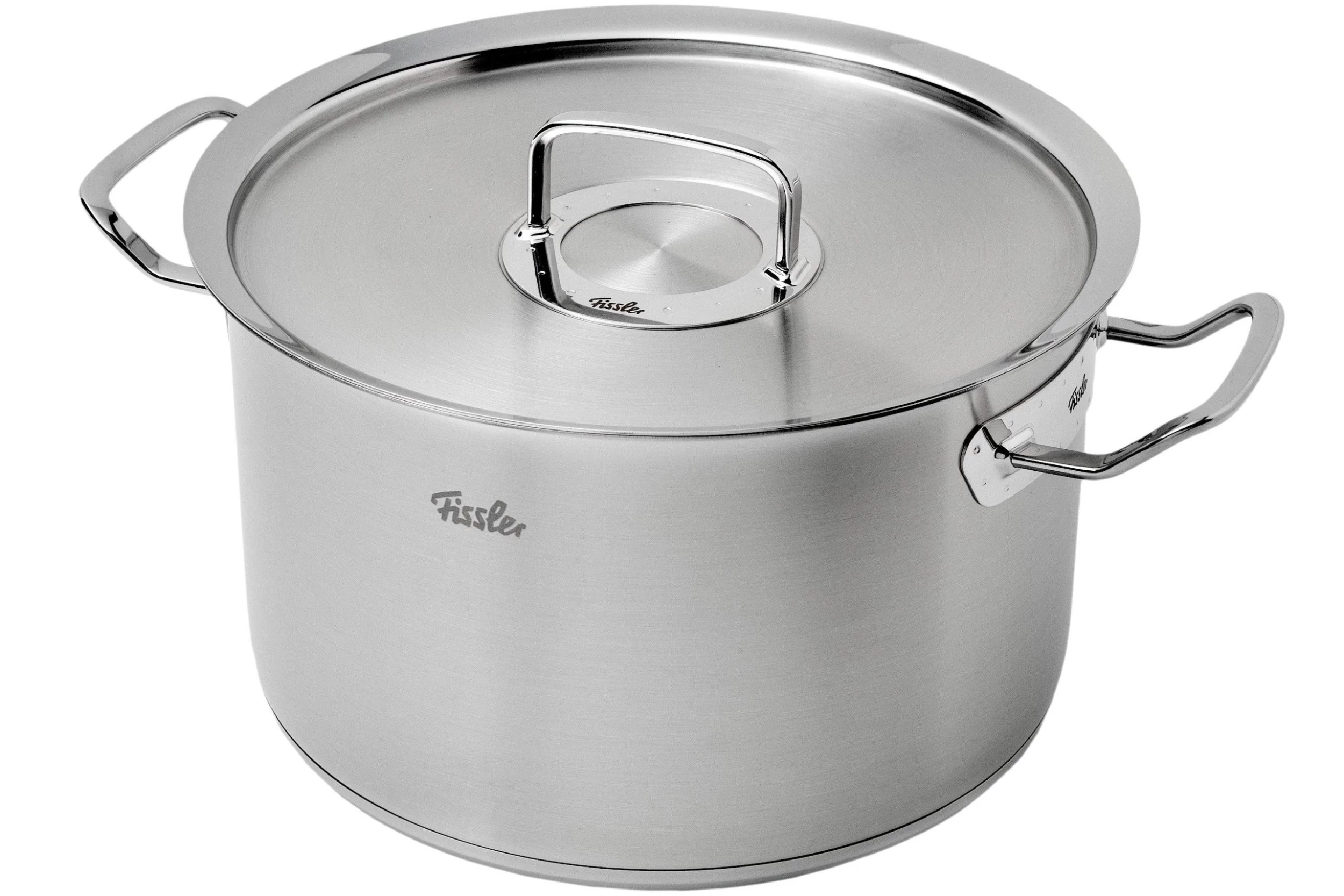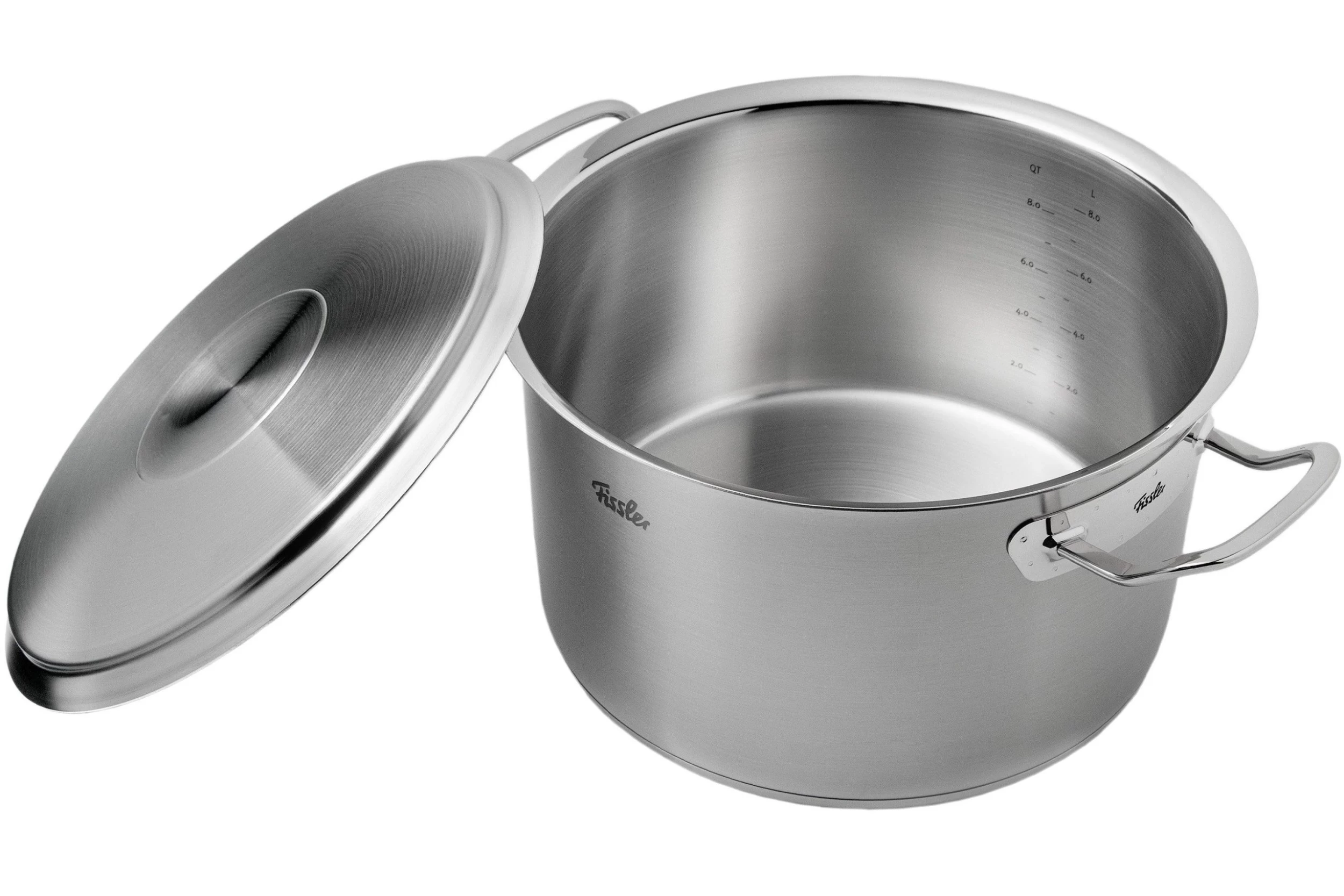 Ce faitout Fissler Original Profi Collection 28 centimètres possède une grande contenance. On peut le remplir jusqu’à tout de même 10 litres ! La graduation interne va jusqu’à 8 litres. Elle est livrée avec un couvercle en métal.