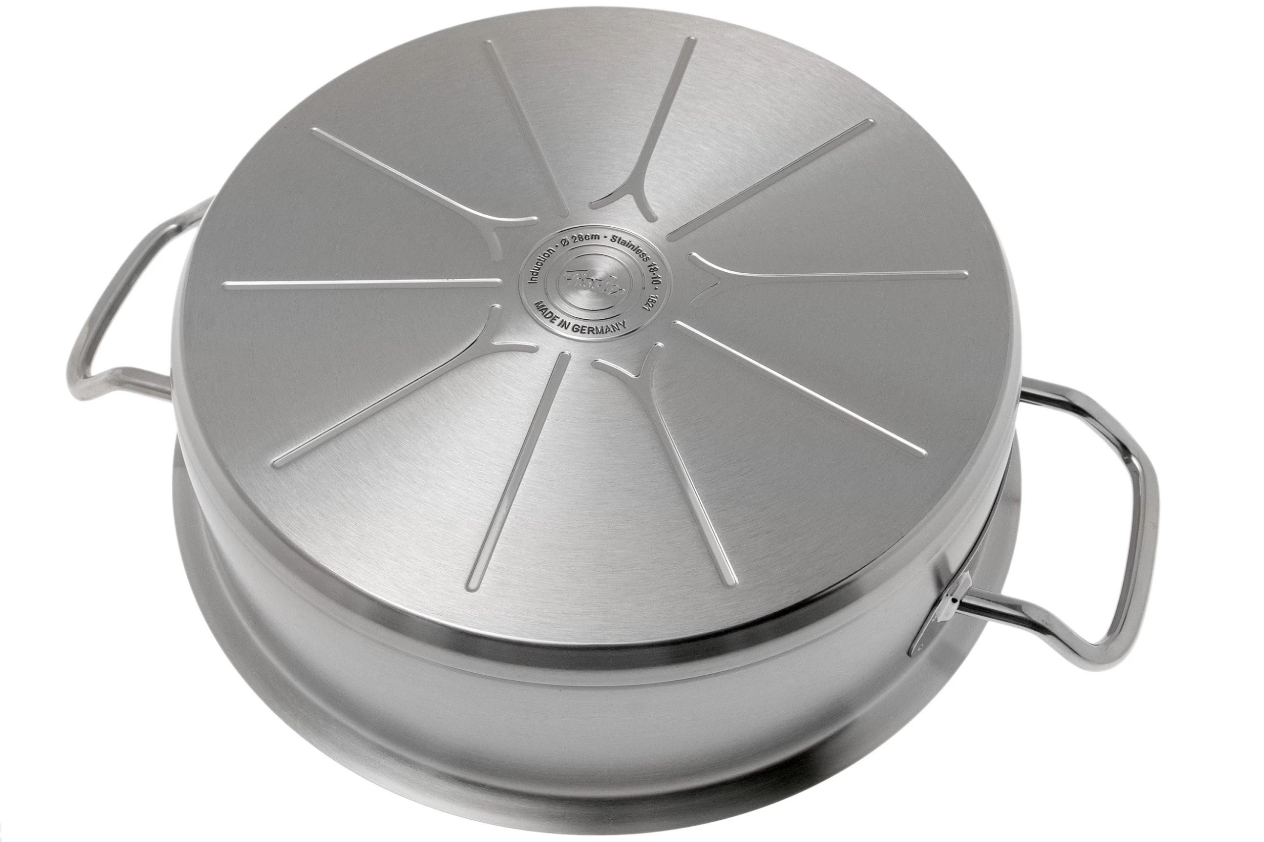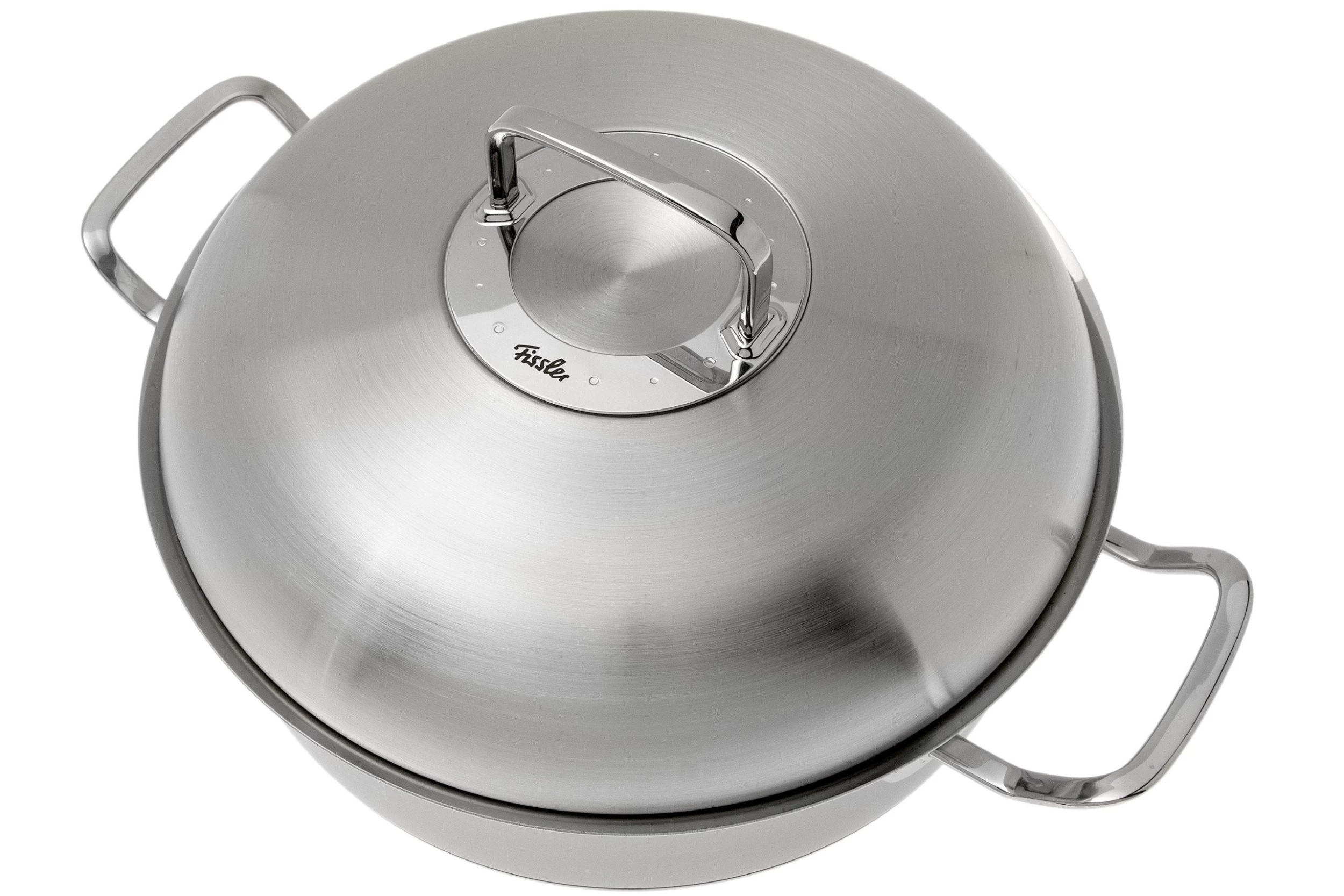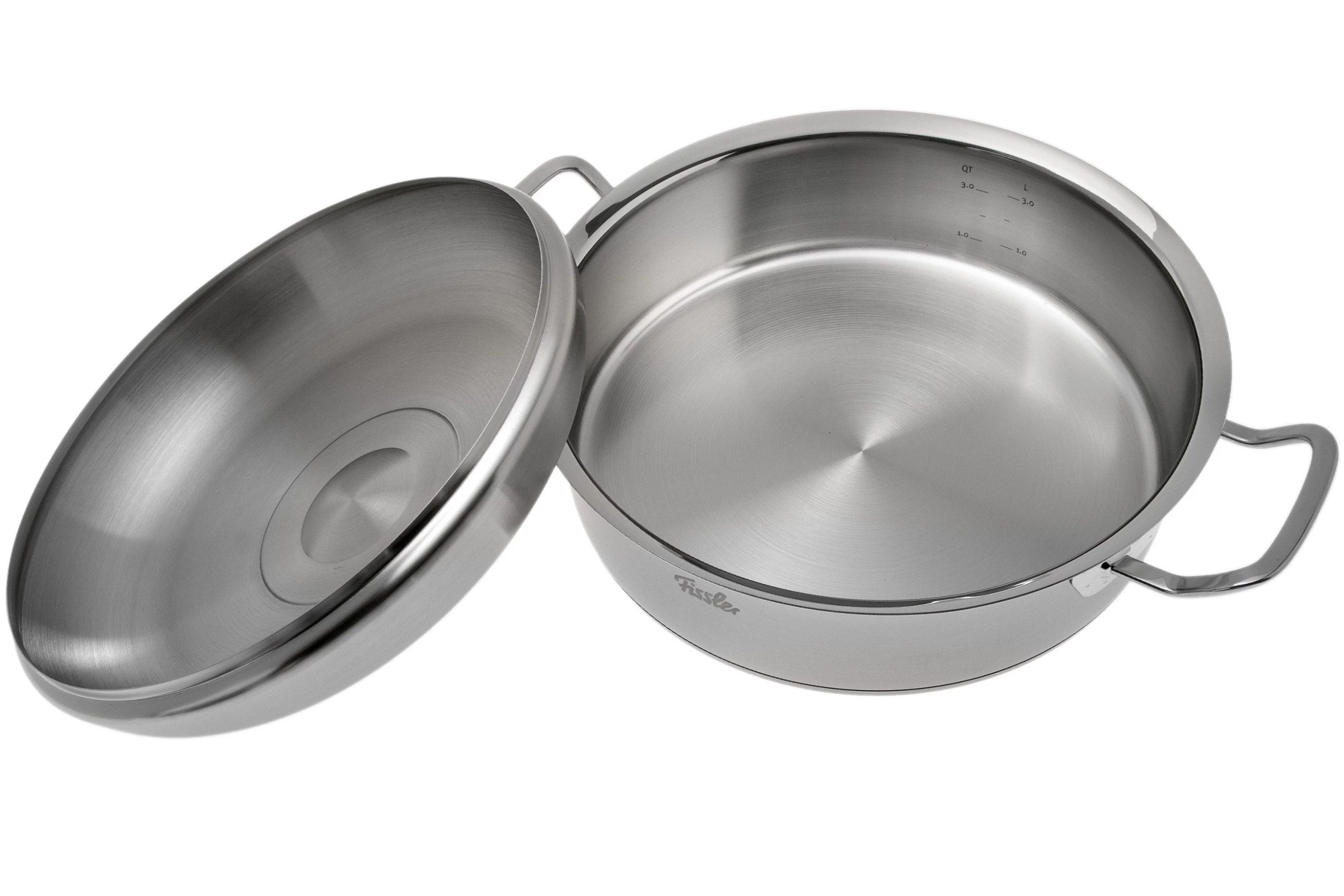 Cette poêle à gratiner Fissler Original Pro Collection est pourvue d’un couvercle extra haut « dôme ». Le couvercle a été conçu afin de pouvoir préparer des plats plus conséquents, dont le volume pourrait dépasser la hauteur de la casserole, sans déborder. Le couvercle se ferme bien, la condensation retombe dans la casserole, vos plats sont encore plus savoureux.