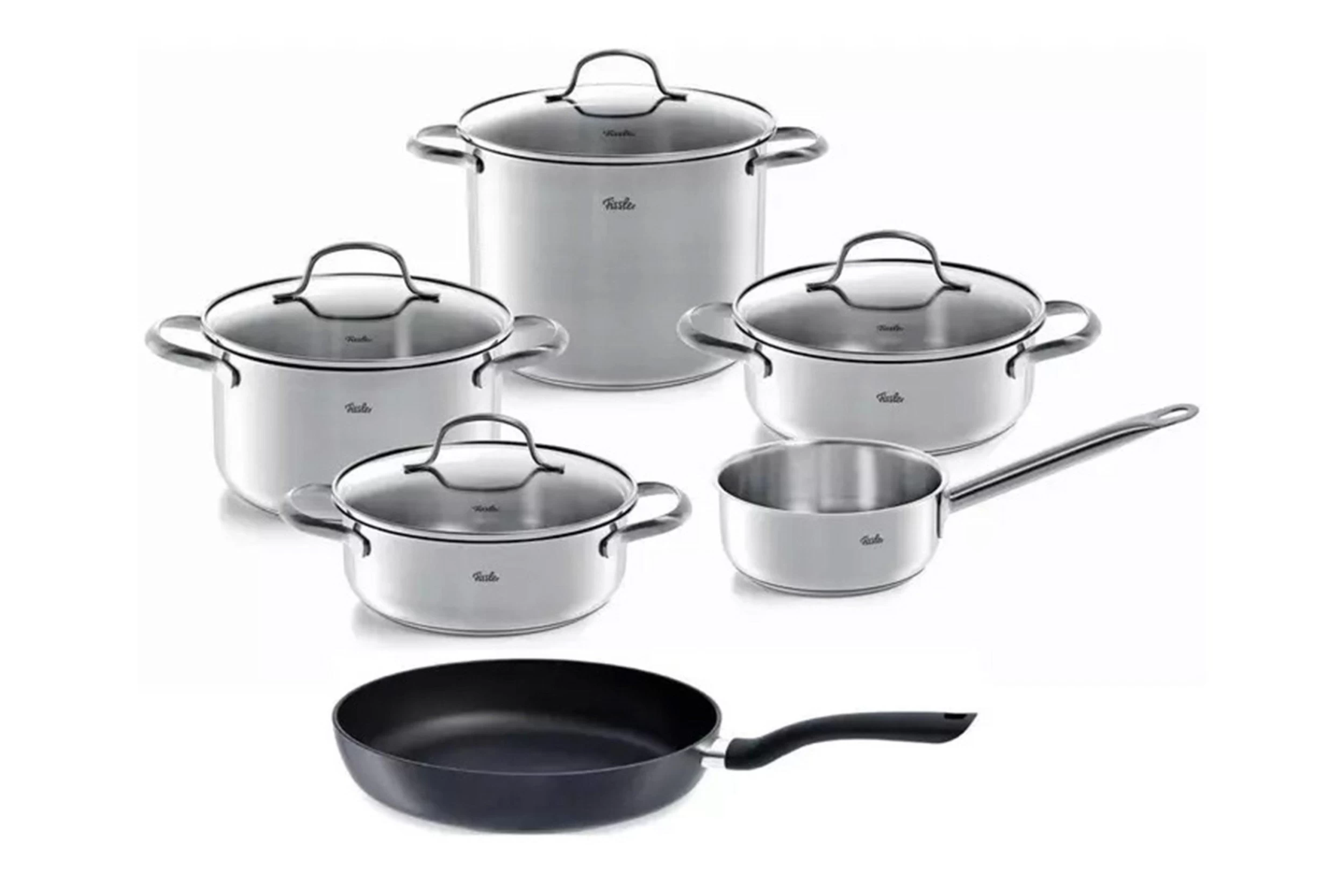 Le set 5 pièces Fissler San Francisco est un superbe ensemble professionnel d’ustensiles de cuisson en acier inoxydable satiné. Leur fond épais présente une conductivité thermique élevée. Ce dernier va assurer une répartition idéale de la chaleur. La superbe finition premium des casseroles, leurs couvercles en verre ainsi que la poêle à frire viennent compléter le tout. Ce set comprend une poêle à frire Fissler Cenit Induction supplémentaire, en plus des 5 ustensiles inclus.