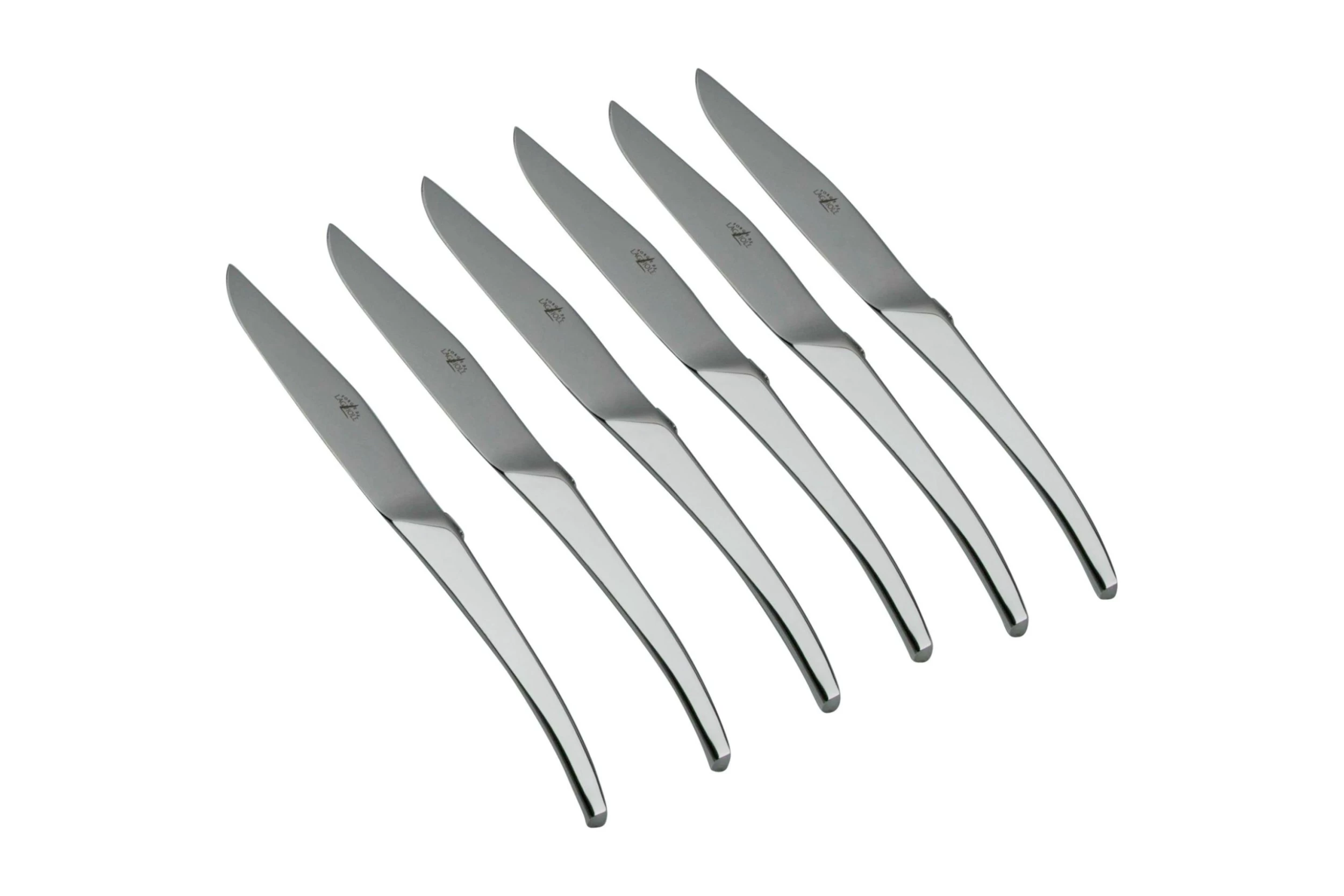 Le Forge de Laguiole Skel Signature est un set de couteaux à steak modernes et élégants. Ces couteaux à steak ont été conçus par les designers français Catherine et Bruno Lefebvre. Le design de ces couteaux à steak est similaire à celui des premiers couteaux Laguiole. Ces couteaux ont été forgés à partir d’un bloc d’acier inoxydable et ont un look minimaliste, avec un manche triangulaire. Les couteaux ont reçu un polissage miroir. Cela leur donne un aspect très élégant et vous permet de vérifier votre maquillage pendant le diner.
