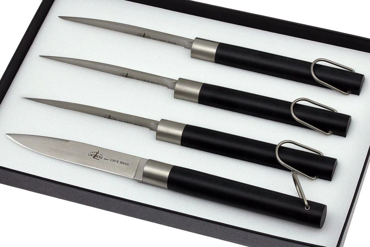 Ce set de quatre couteaux de table est le fruit d’une collaboration entre Forge de Laguiole et le chef Michel Bras. Michel Bras a ouvert un restaurant au sein du musée Soulages : Café Bras. Cette gamme de couteaux de table a été spécialement conçue pour ce restaurant.