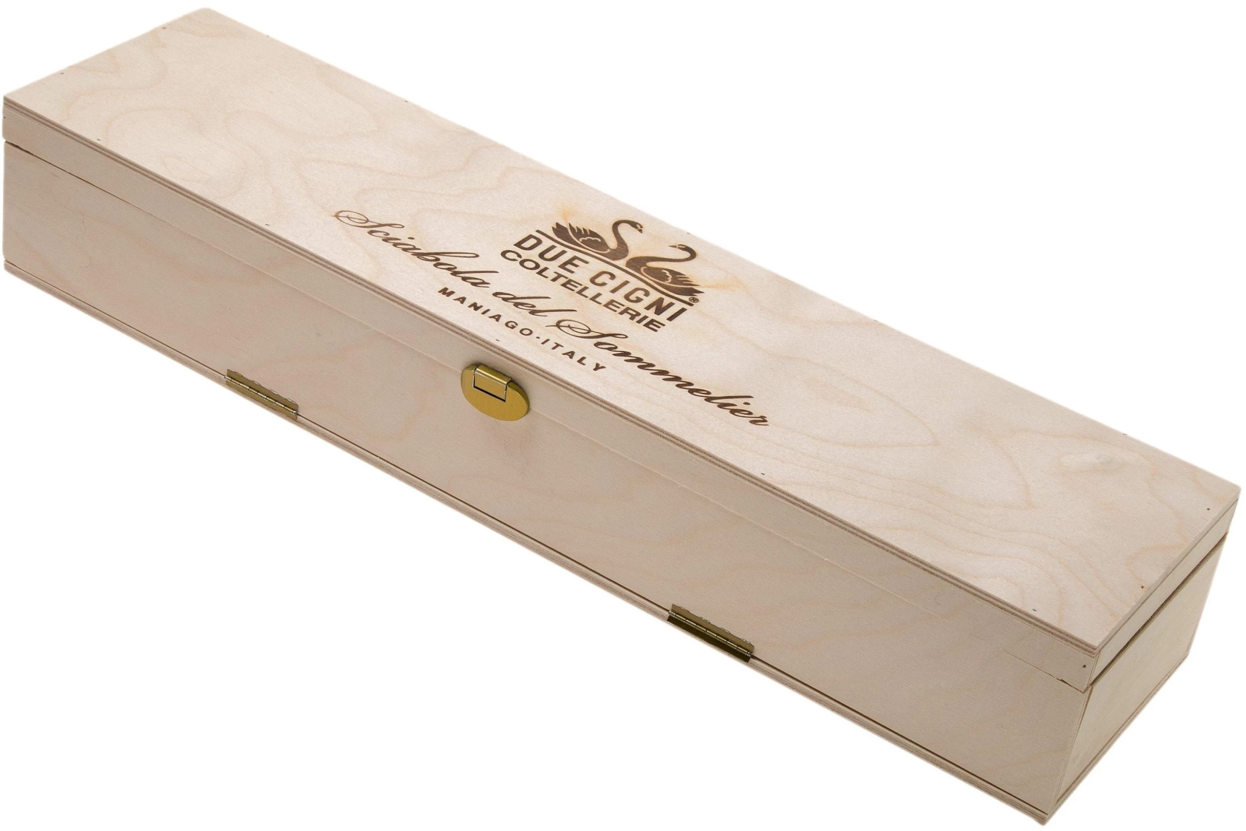 Comme toujours avec cette marque, ce sabre à champagne Fox de haute qualité est fabriqué à la main en Italie dans les ateliers de Maniago. Ce sabre respire le luxe. Le manche est décoré avec un motif unique, les finitions en bronze sont magnifiques, tout comme la garde. Le manche est recouvert de cuir noir et pourvu d’une dragonne rouge vif. La lame est en acier carbone non inoxydable avec un revêtement noir. Ce sabre est livré dans un coffret de rangement luxueux en bois avec un socle noir, également en bois. Il permet de présenter ostensiblement le sabre dans son coffret. A table ou accroché au mur, c’est une véritable œuvre d’art. Cet ensemble complet est un cadeau parfait pour tous les amateurs de champagne.