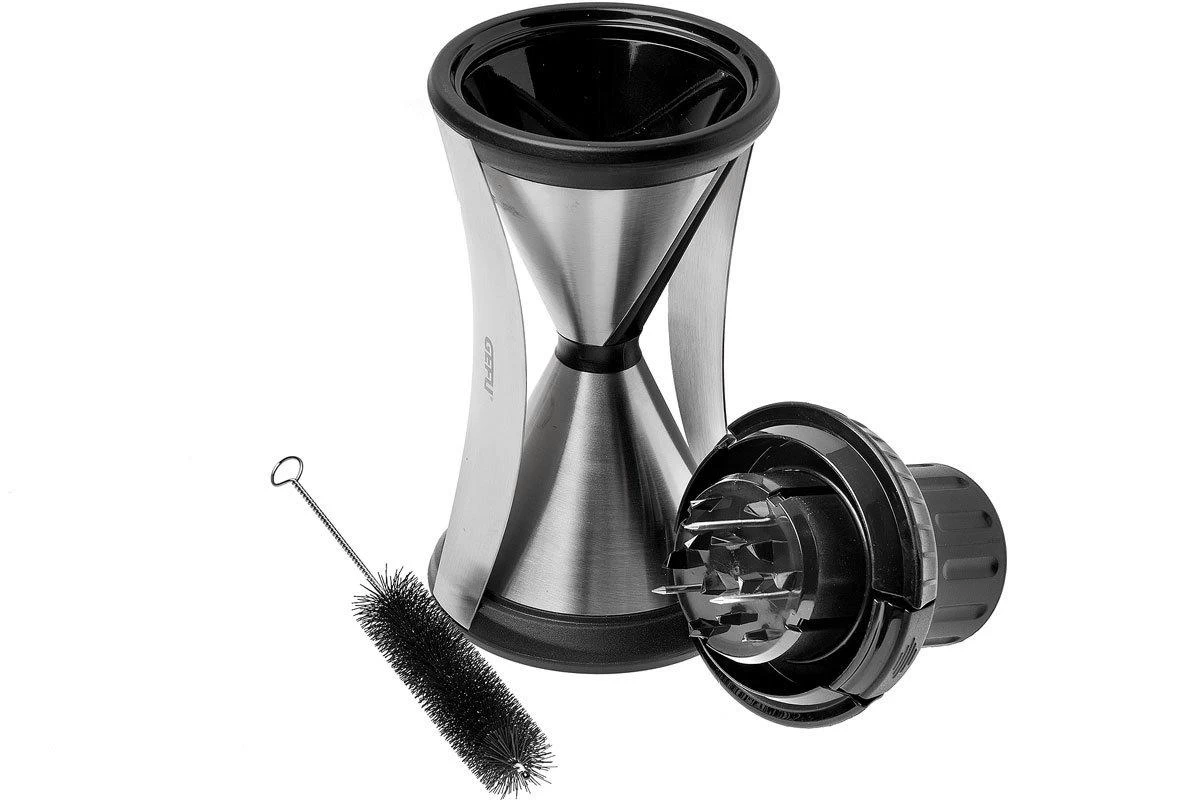Le taille-légumes en spirales GEFU Spirelli XL permet de préparer des juliennes de légumes, ou « spaghettis de légumes ». Génial pour décorer tous vos plats. Ce Spirelli XL est la version plus grande du fameux Spirelli. Cette version XL est idéale pour couper des légumes dont la section est de maximum 65 mm. Le taille-légumes en spirale est doté de deux lames en acier inoxydable japonais. Pour des juliennes dont l’épaisseur est de 4,5 mm ou 8 mm. Succès garanti !