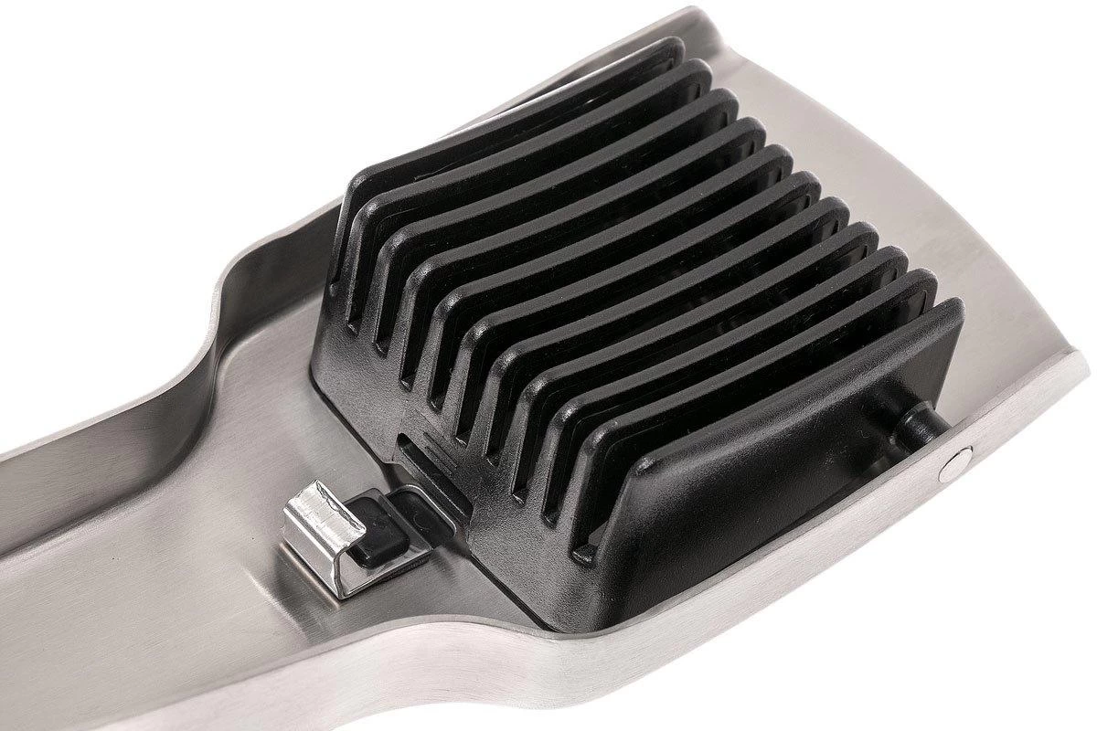 Avec le GEFU Tari, couper les ingrédients devient un jeu d’enfant. Réalisez des tranches parfaites de 5 mm. Rapidement et en toute sécurité. Il convient pour tous les légumes et fruits tendres, tels que les fraises et les raisins, les kiwis mais aussi pour les œufs et la mozzarella. Il ne convient pas aux pommes de terre crues, ni aux oignons, carottes et autres ingrédients durs. Les lames japonaises dentelées sont tranchantes, solides et inoxydables. Autre avantage : ce trancheur se range de façon compacte et sûre grâce à un système de verrouillage pratique. Il suffit de déplier la lame pour la nettoyer. Que ce soit à la main ou au lave-vaisselle.