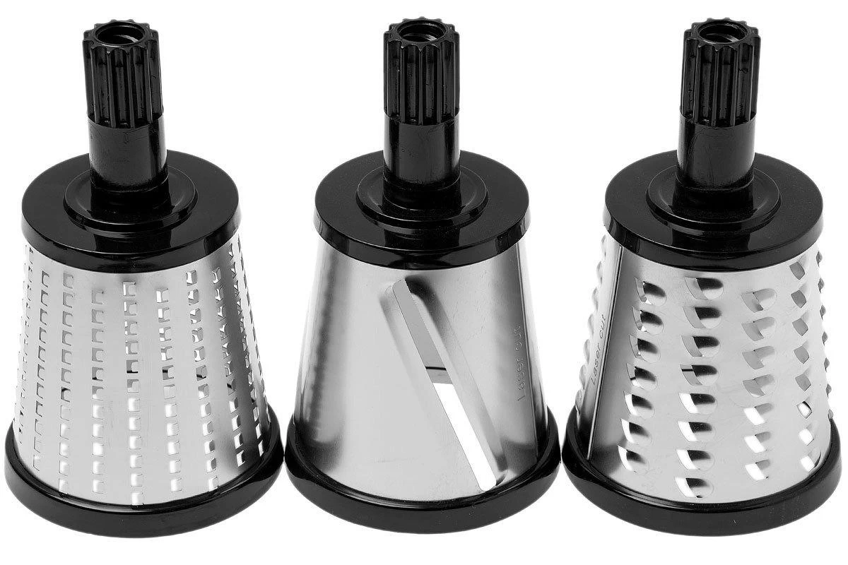 Avec cette râpe rotative GEFU Transforma vous râpez très facilement légumes, fruits et fruits à coques. La râpe se compose de trois différents tambours. « »LASER CUT » » et donc très tranchante. Pour obtenir de petites lamelles, copeaux ou tranches fines !
