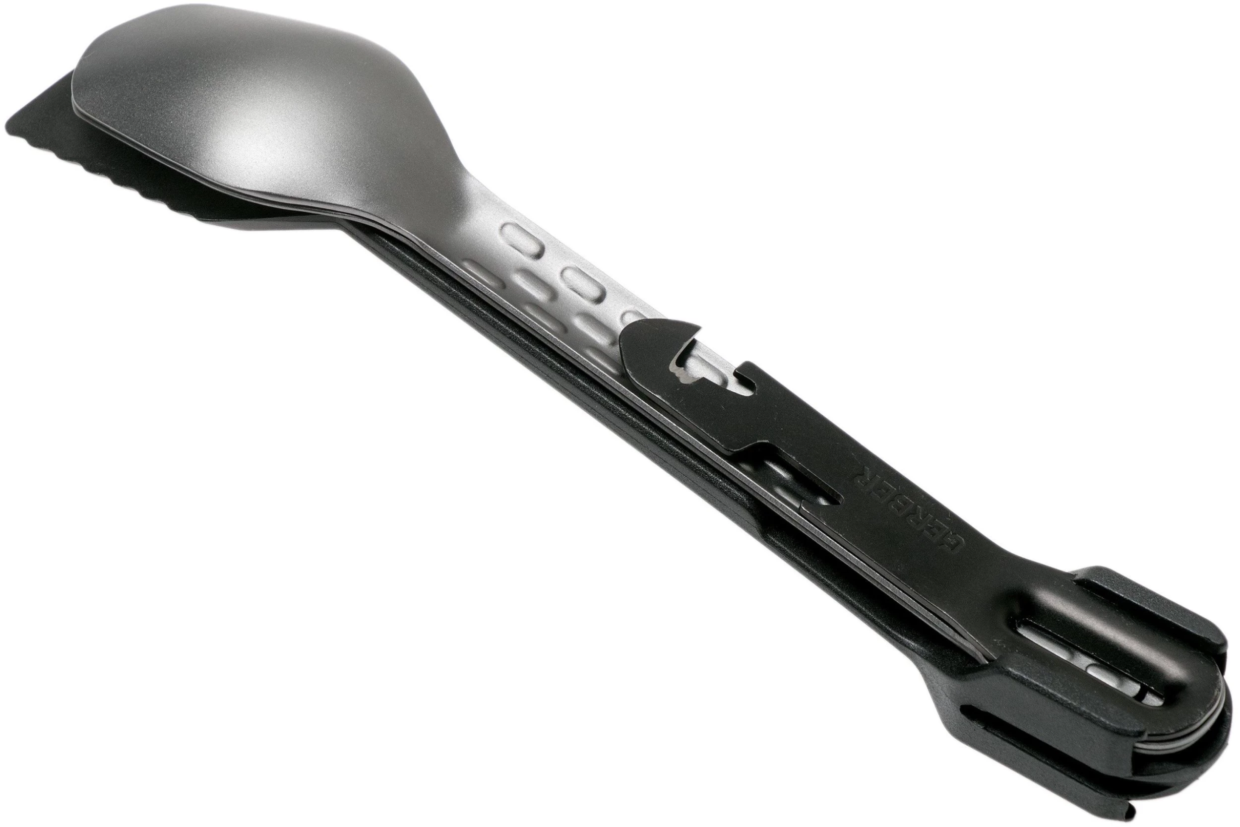 Le Gerber ComplEAT est un outil qui vous permet de préparer à manger, manger et même nettoyer vos ustensiles de cuisine lorsque vous partez en excursion. Le ComplEAT est un multitool tout-en-un doté d’une fourchette, d’une cuillère, d’un couteau en silicone, d’une spatule et d’un racloir ainsi qu’un outil multifonction avec quatre fonctions. La fourchette et la spatule peuvent être attachées ensemble de sorte à former une pince multifonction. Le tout ne pèse que 64 grammes. Le ComplEAT est donc un outil parfait pour ceux qui aiment voyager avec uniquement l’essentiel.