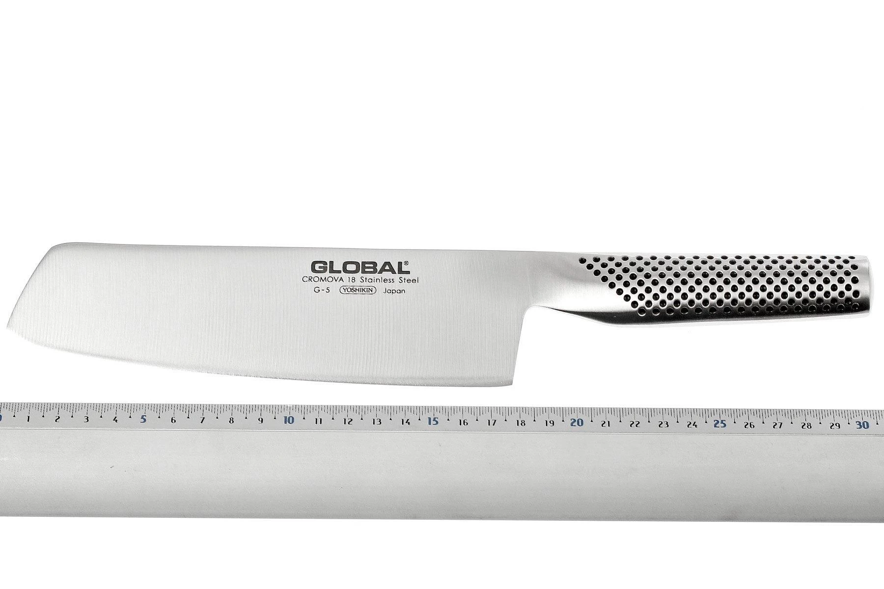 Passez à la vitesse supérieure pour découper vos légumes avec le Global G5 Nakiri. C’est un couteau qui vous permet de découper sans effort carottes, concombres ou chou. Ce couteau se caractérise par une lame droite, qui vous permet d’utiliser la longueur totale de la lame de manière optimale.