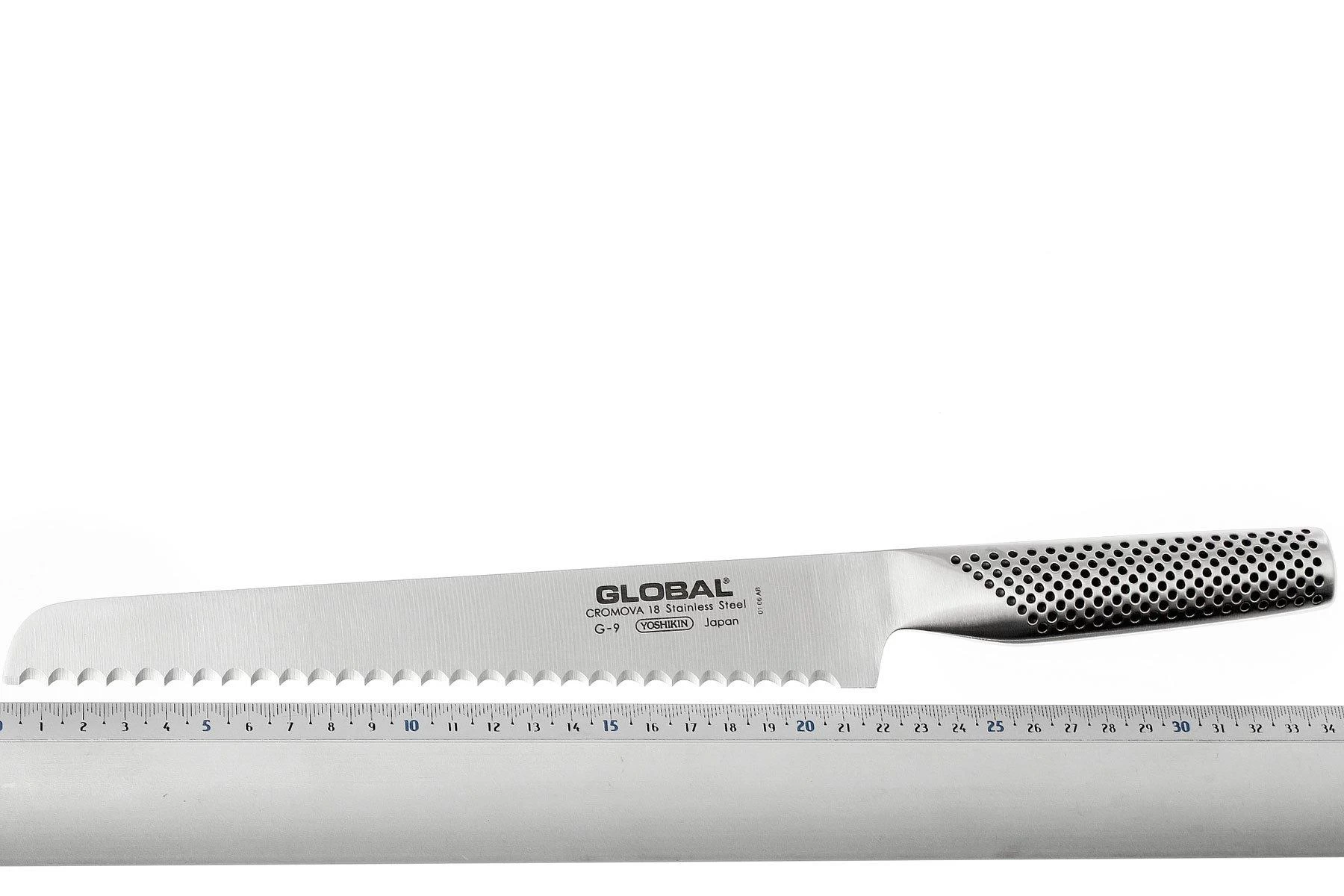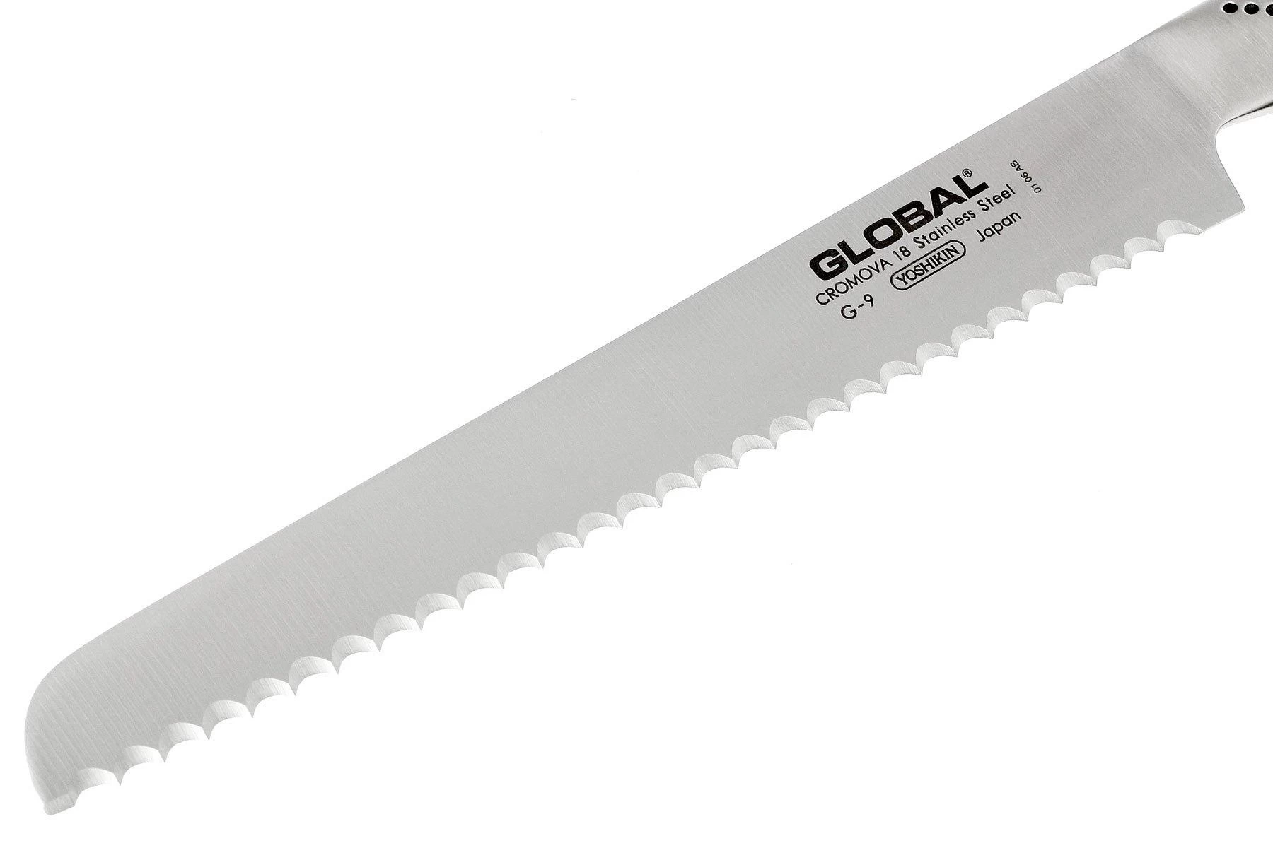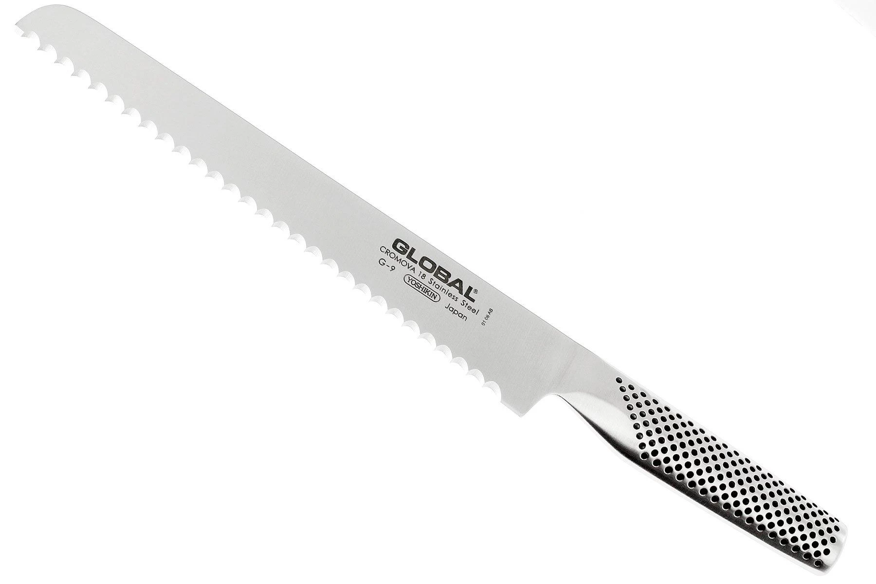 Une baguette française, du pain blanc tout juste sorti du four ou des petits pains croustillants, vous pourrez tout couper sans effort avec ce couteau à pain Global G9. Un couteau avec un équilibre exceptionnel entre lame et manche, c’est pour cela que le Global G9 s’adapte si bien à votre main. Le couteau possède une forme idéale et les petits trous sur le manche assurent une bonne prise en main.