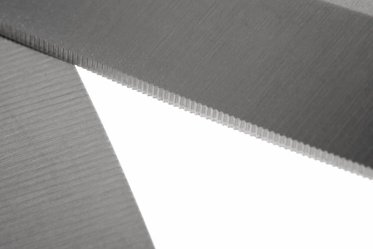 Il a fallu du temps avant que Global commercialise des ciseaux de cuisine. Les ciseaux devant être de la même qualité que les couteaux Global, ils ont réussi avec succès. Les fines dentelures de la coupe (d’un côté des ciseaux) assurent une bonne prise sur le matériau à couper. La grande poignée offre une apparence unique et une bonne prise en main pour les petites et les grandes mains. Le point de pivot des ciseaux est assez bas, vous n’avez donc pas besoin d’appliquer beaucoup de force lors de la coupe.
