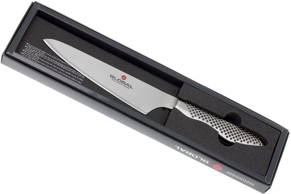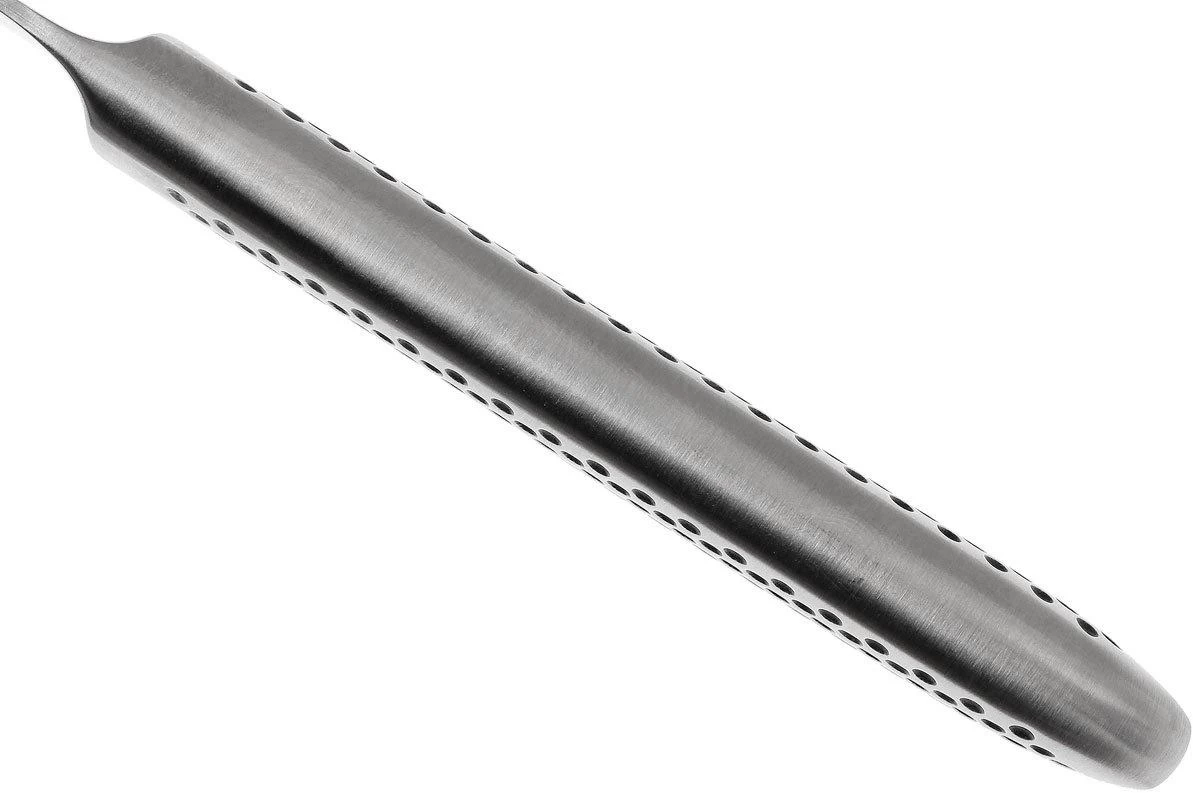 Ce petit couteau de chef est super pour tout faire en cuisine. Sa lame est relativement petite, mais très facile à manier. Le couteau de cuisine Global GS-89 est agréable en main grâce à son manche affiné. Le manche est rempli de sable, pour un équilibre parfait avec la lame.