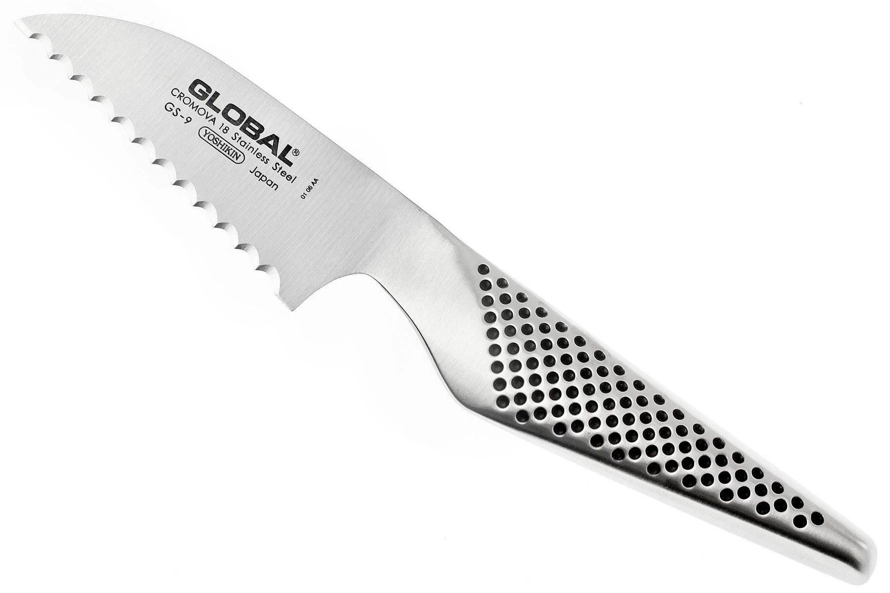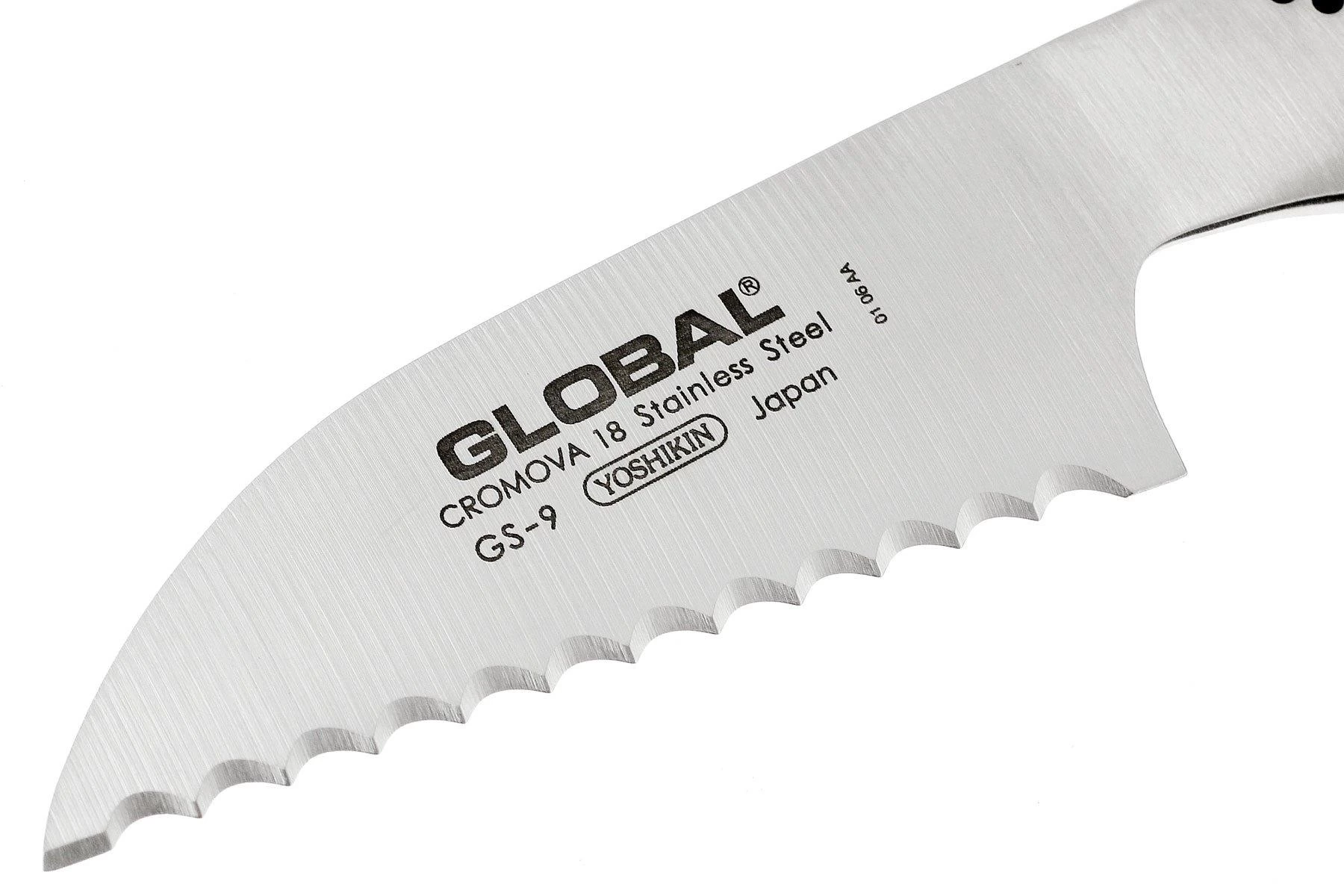 Ce couteau à tomates Global GS9 tranche sans difficulté tomates et autres légumes. Les dents affûtées permettent de ne pas écraser les légumes. La lame en acier Cromova 18 est finement aiguisée et permet une coupe facile.