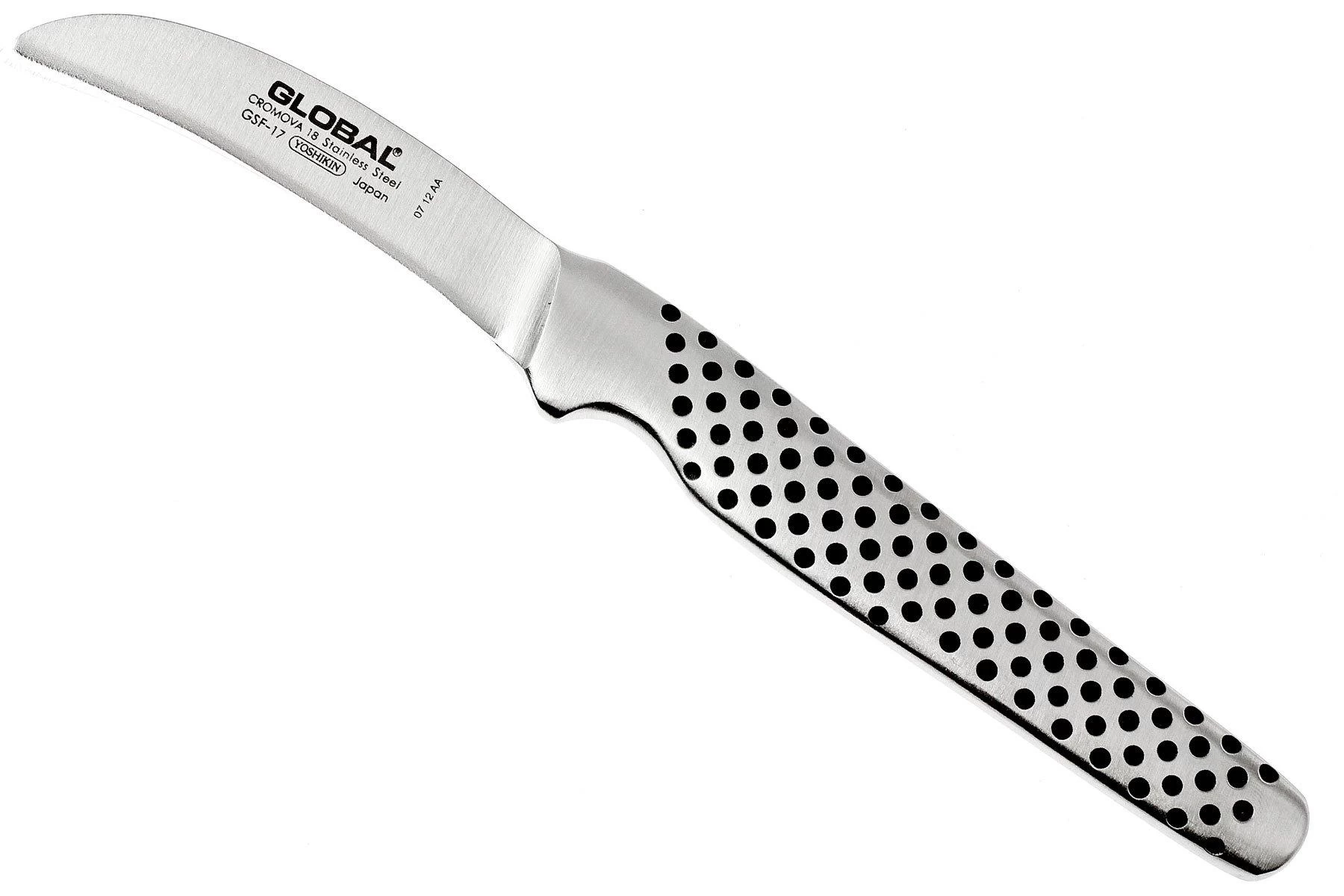 Peler une pomme de terre devient un simple plaisir avec le couteau bec d’oiseau de Global. Sa lame étroite et très tranchante est un plaisir pour travailler. Son poids léger et ses dimensions réduites font que ce couteau est très maniable. Les petits creux dans le manche vous permettent une excellente prise pendant la coupe. Vous profiterez de ce couteau pendant de longues années.