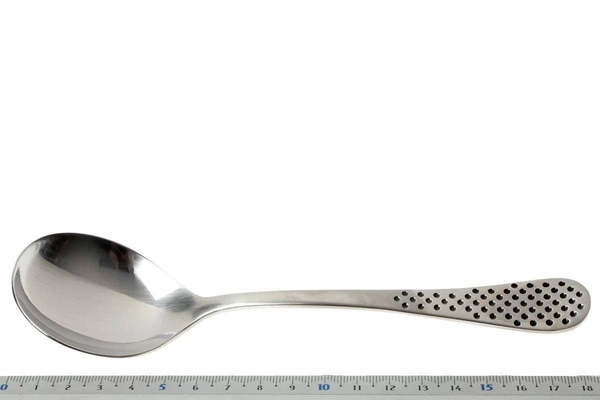 Cette cuillère à soupe Global fait partie de la collection GT de Global. La collection GT vous permet de profiter de la qualité Global en cuisine mais aussi sur votre table à manger. La finition satinée, associée aux petits points noirs typiques de Global, offre à ces couverts un look très chic.
