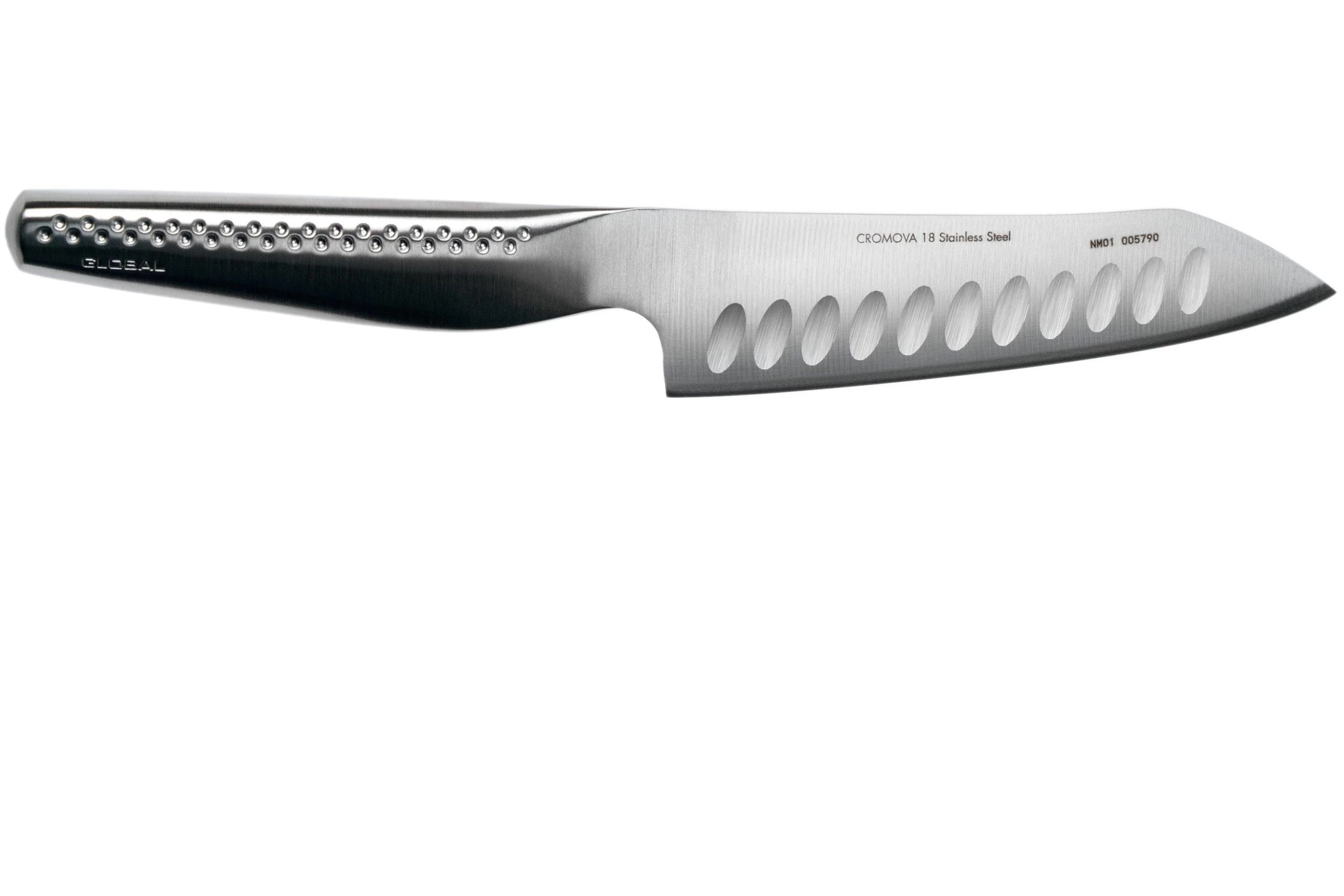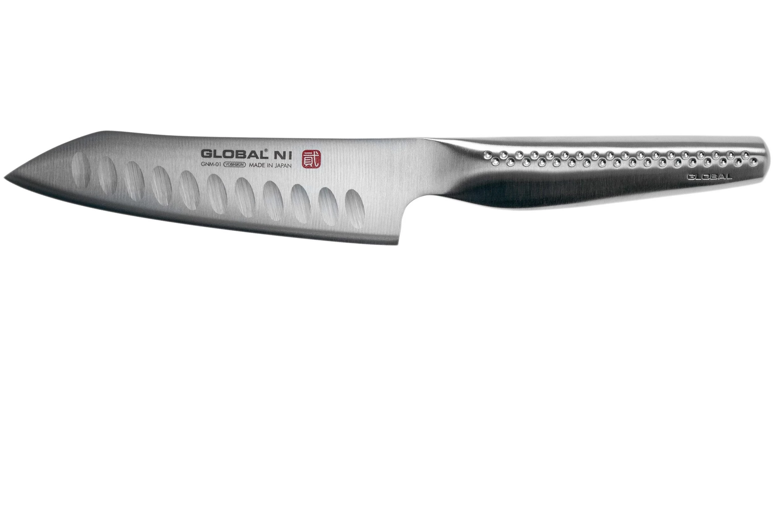 La gamme Global Ni est composé de couteaux à légumes avec alvéoles de trois tailles différentes. Avec une lame de 14 cm, ce GNM-01 est le plus petit des trois. Les deux autres modèles GNM-02 et GNM-03 ont une lame de 15 et 16 cm. Ces trois couteaux sont conçus pour couper les légumes.