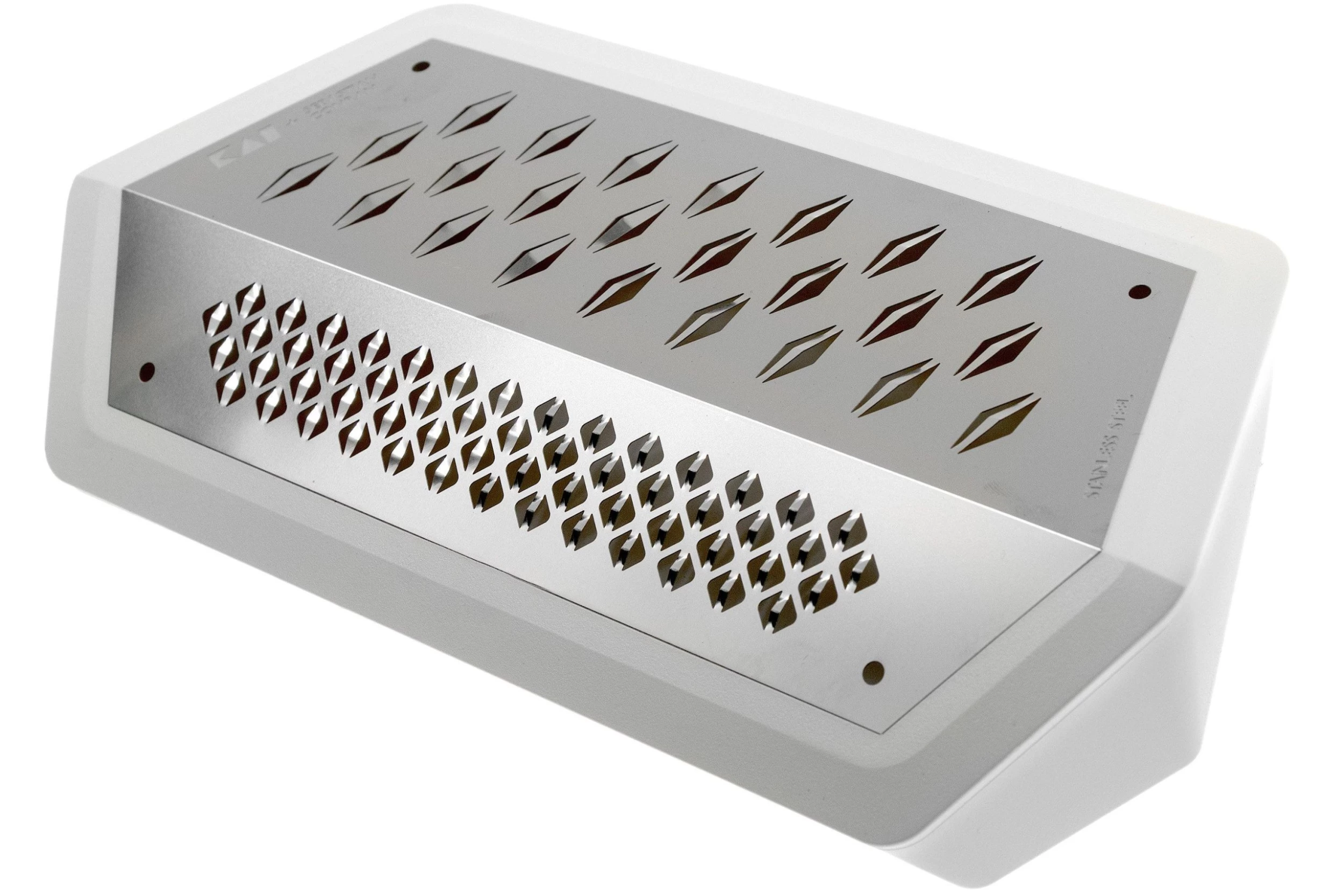 Cette râpe double KAI Janus fait partie de la gamme Sebastian Conran Gifu et propose un côté fin et un côté grossier. Cette râpe convient donc pour beaucoup de préparations culinaires. Le bac de collecte situé sous la râpe est très pratique. Fini le gâchis !