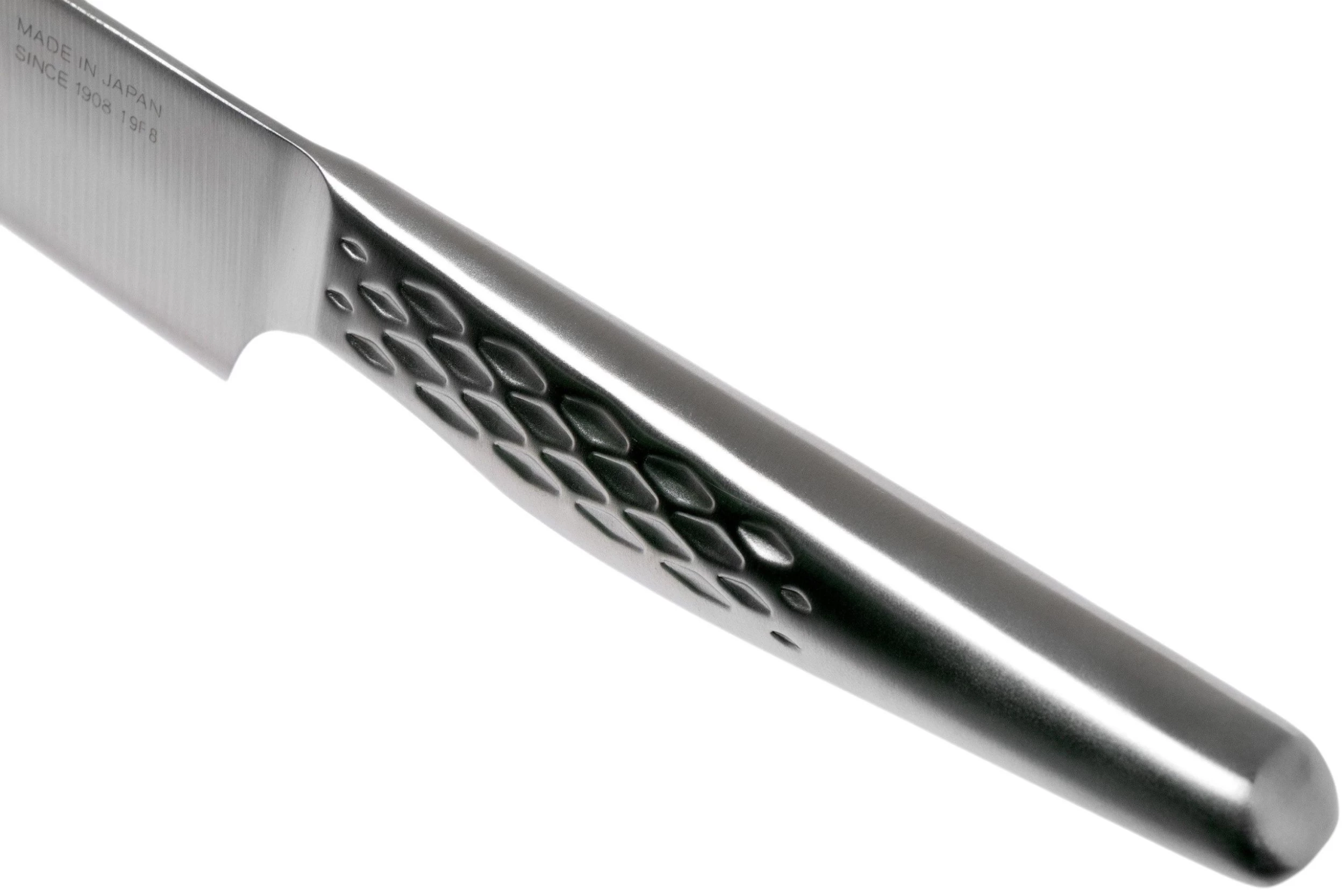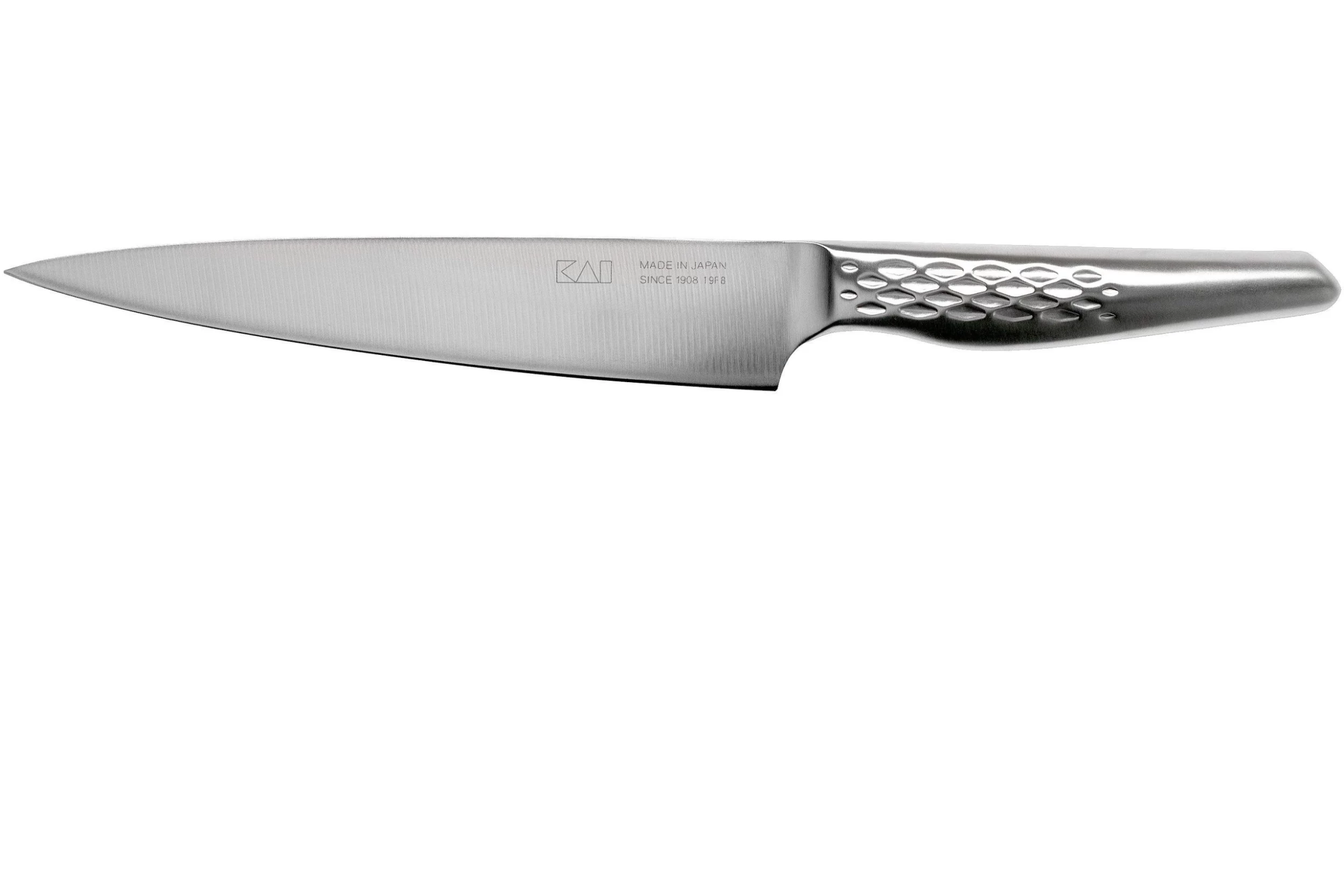 Ce couteau universel KAI Seki Magoroku Shoso 15 cm est idéal pour les petites coupes. Couper les herbes, nettoyer un morceau de viande ou couper des légumes : Tout est possible avec ce couteau de cuisine polyvalent. La conception entièrement en acier inoxydable de ce couteau japonais ne laisse aucune chance aux bactéries. En plus de ses propriétés hygiéniques, ce couteau se distingue par son excellente ergonomie et un tranchant sans précédent grâce à une technologie d’aiguisage très innovante.