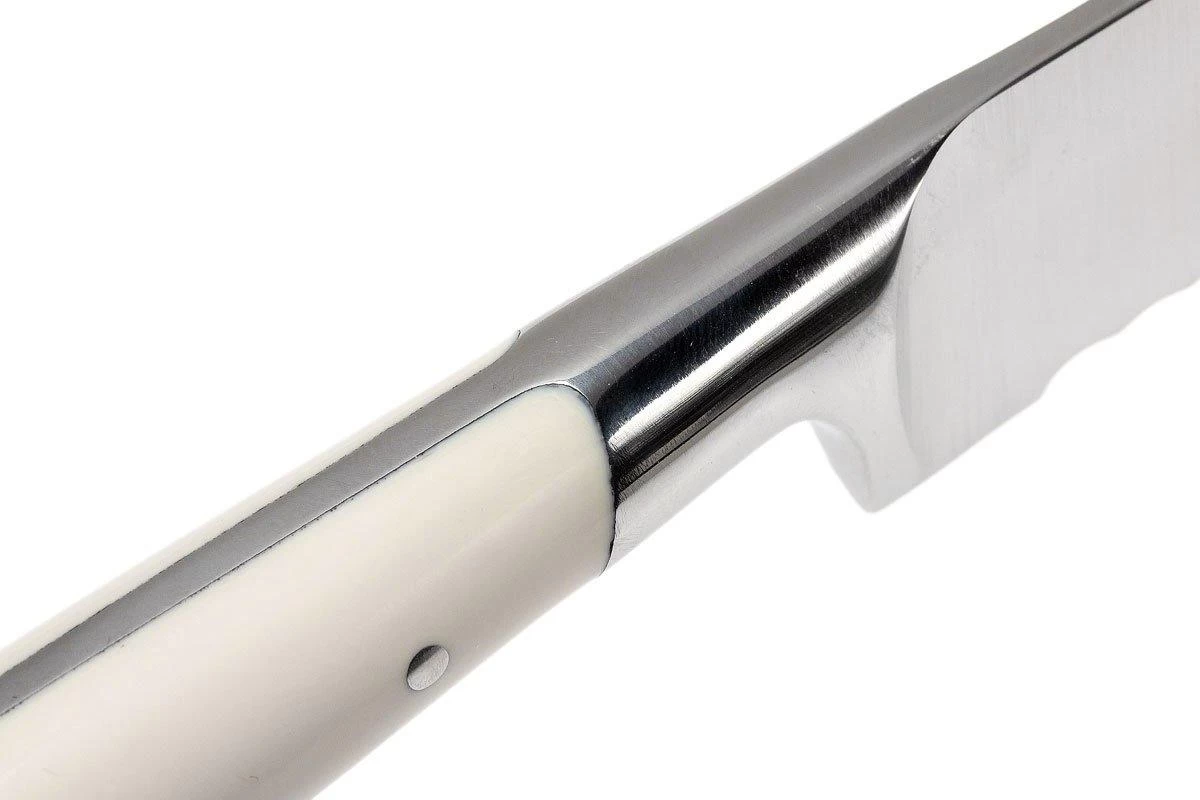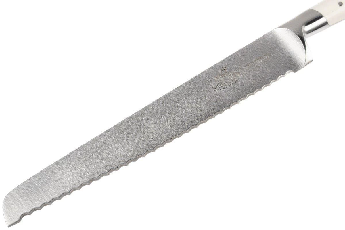 Le couteau à pain Lion Sabatier Edonist blanc possède une longue lame dentelée avec une légère courbe. Il convient pour trancher toutes les sortes de pains. Des croûtes dures à molles en passant par le pain de mie et la brioche. Mais saviez-vous que le couteau à pain permet également de couper les gâteaux et tartes ? Ils peuvent également éplucher les fruits et légumes durs comme le melon, la citrouille et le céleri. Un outil très polyvalent dans la cuisine.