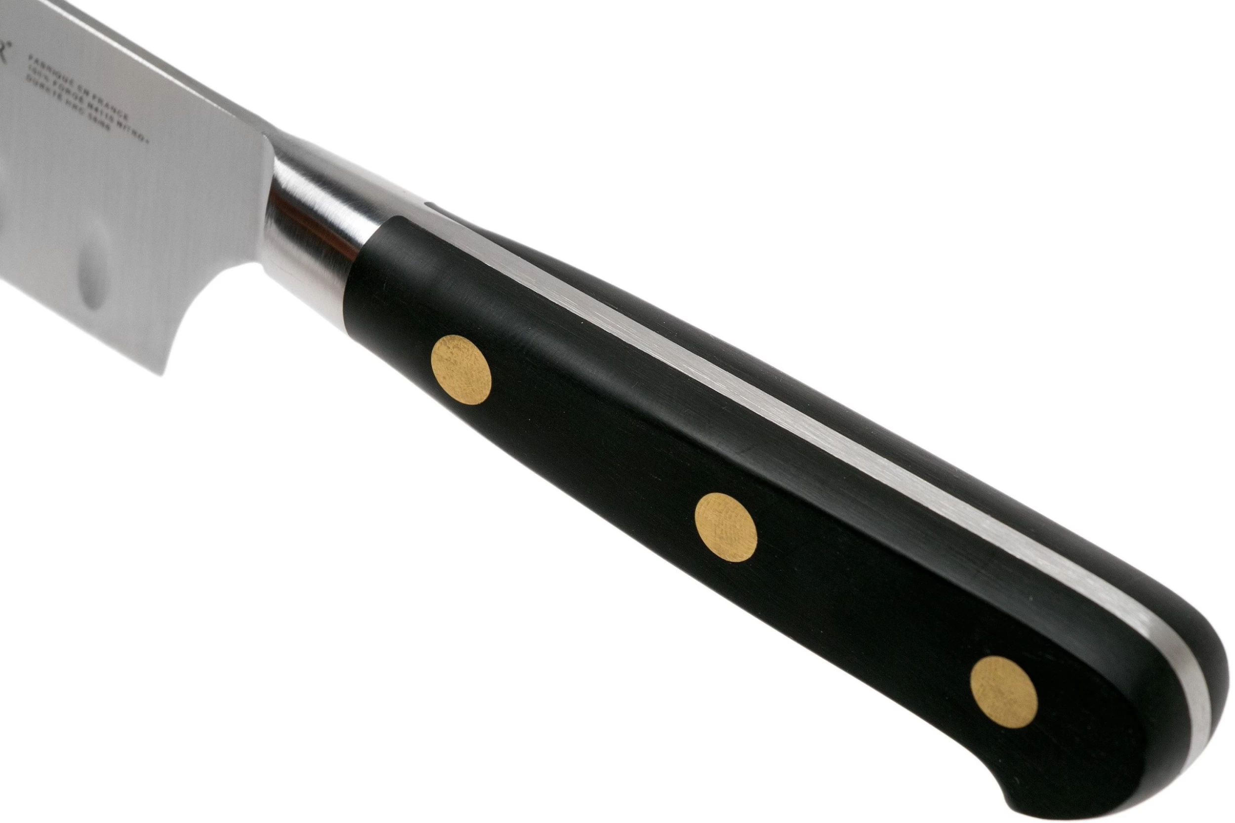 Ce Santoku Lion Sabatier Idéal est un petit couteau de cuisine pour réaliser la plupart des tâches. Des alvéoles au niveau de la lame empêchent les aliments de coller. Élégant et pratique !
