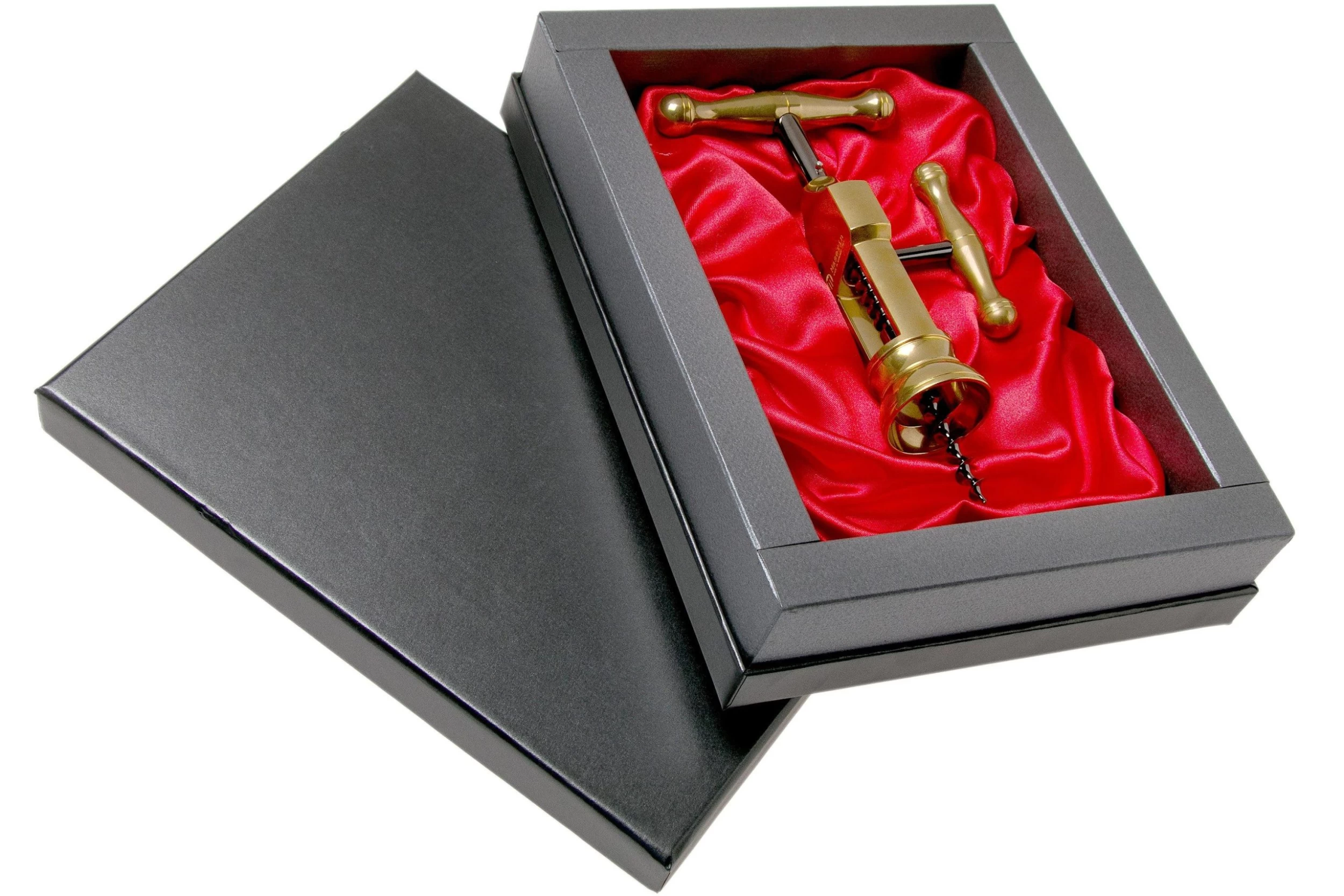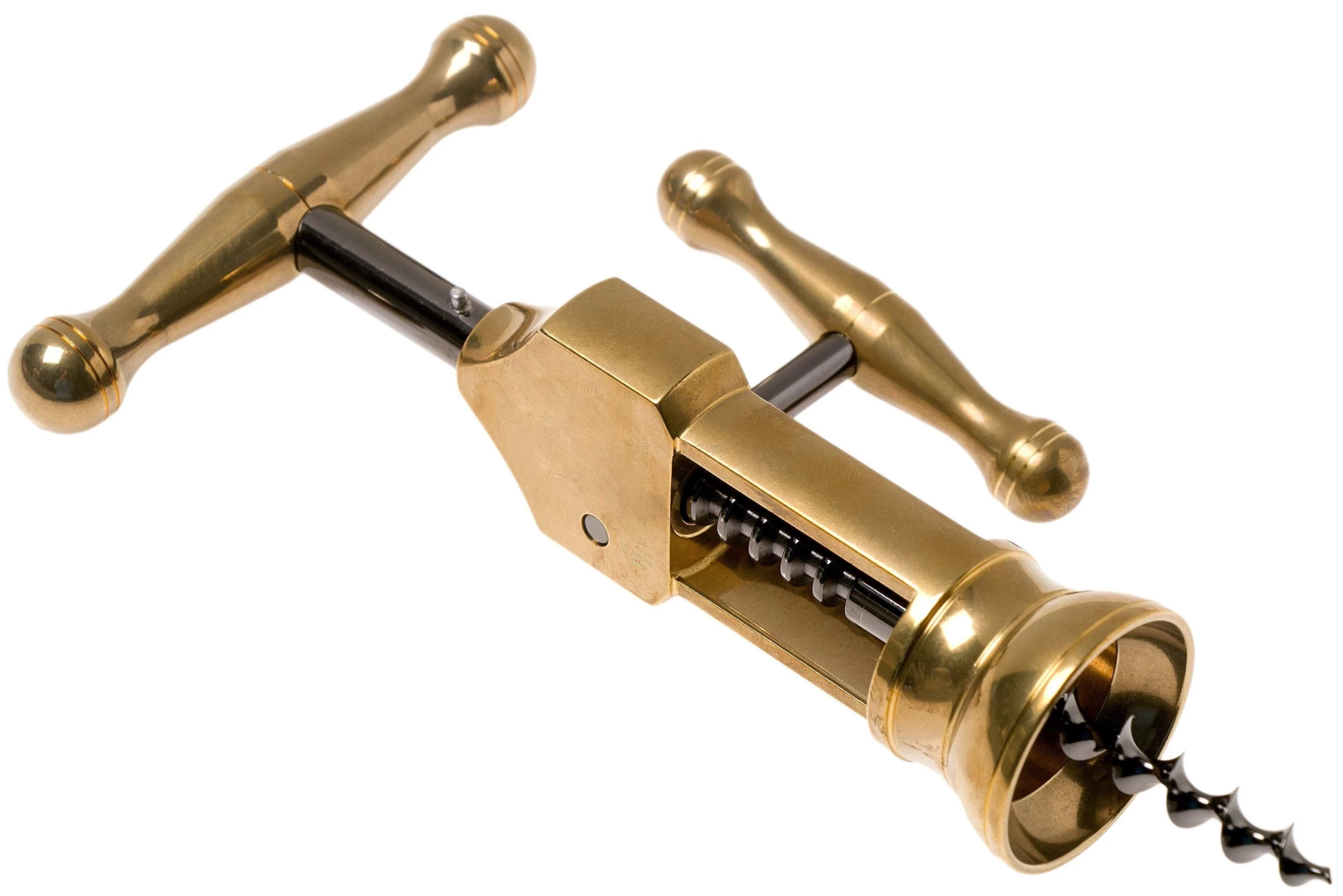 On voit tout de suite que ce tire-bouchon Maserin King est un accessoire de haute qualité. Ce tire-bouchon tout en métal est assez lourd et bien solide. Son design est en plus très élégant, et le tire-bouchon King est livré dans un emballage cadeau luxueux. Il est fait en laiton. Ce modèle est une réplique du tire-bouchon du 19ᵉ siècle : le London Rack.