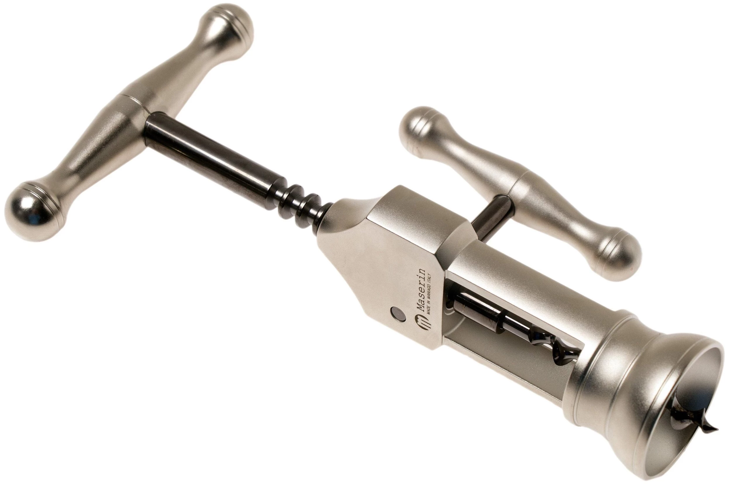 On voit tout de suite que ce tire-bouchon Maserin King est un accessoire de haute qualité. Ce tire-bouchon tout en métal est assez lourd et bien solide. Son design est en plus très élégant, et le tire-bouchon King est livré dans un emballage cadeau luxueux. Ce tire-bouchon est fait à la main en laiton, avec une finition satinée. Ce modèle est une réplique du tire-bouchon du 19ᵉ siècle : le London Rack.