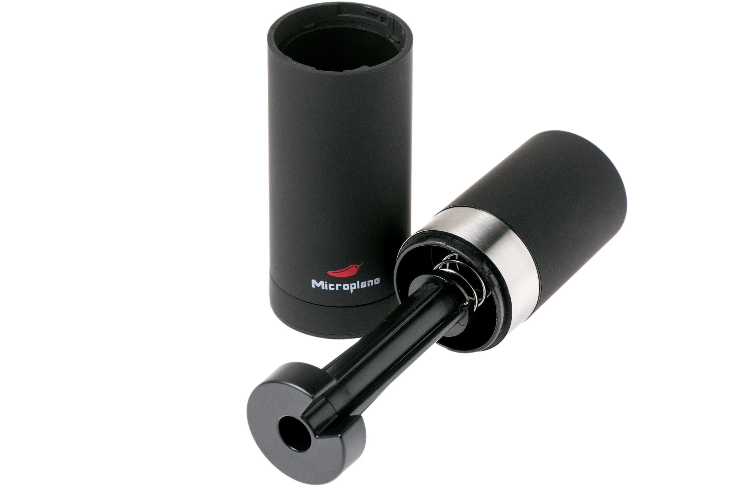 Le moulin à pimentsMicroplane chili mill vous permet de moudre vos piments. La râpe fine sur la face inférieure garantit une conservation parfaite des huiles savoureuses. Vous n’aurez pas de piment plus frais !