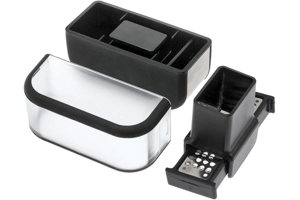 La râpe Microplane Garlic Cutter est un accessoire pratique qui permet de râper l’ail rapidement sans aucun risque de se couper les doigts. Oublié les presse ail antiques avec lesquels il faut exercer une forte pression, cela n’est pas nécessaire avec cette râpe. Il suffit de faire coulisser le couvercle d’avant en arrière cela entraîne la gousse d’ail contre la râpe. Les doigts n’approchent ainsi pas des parties tranchantes.