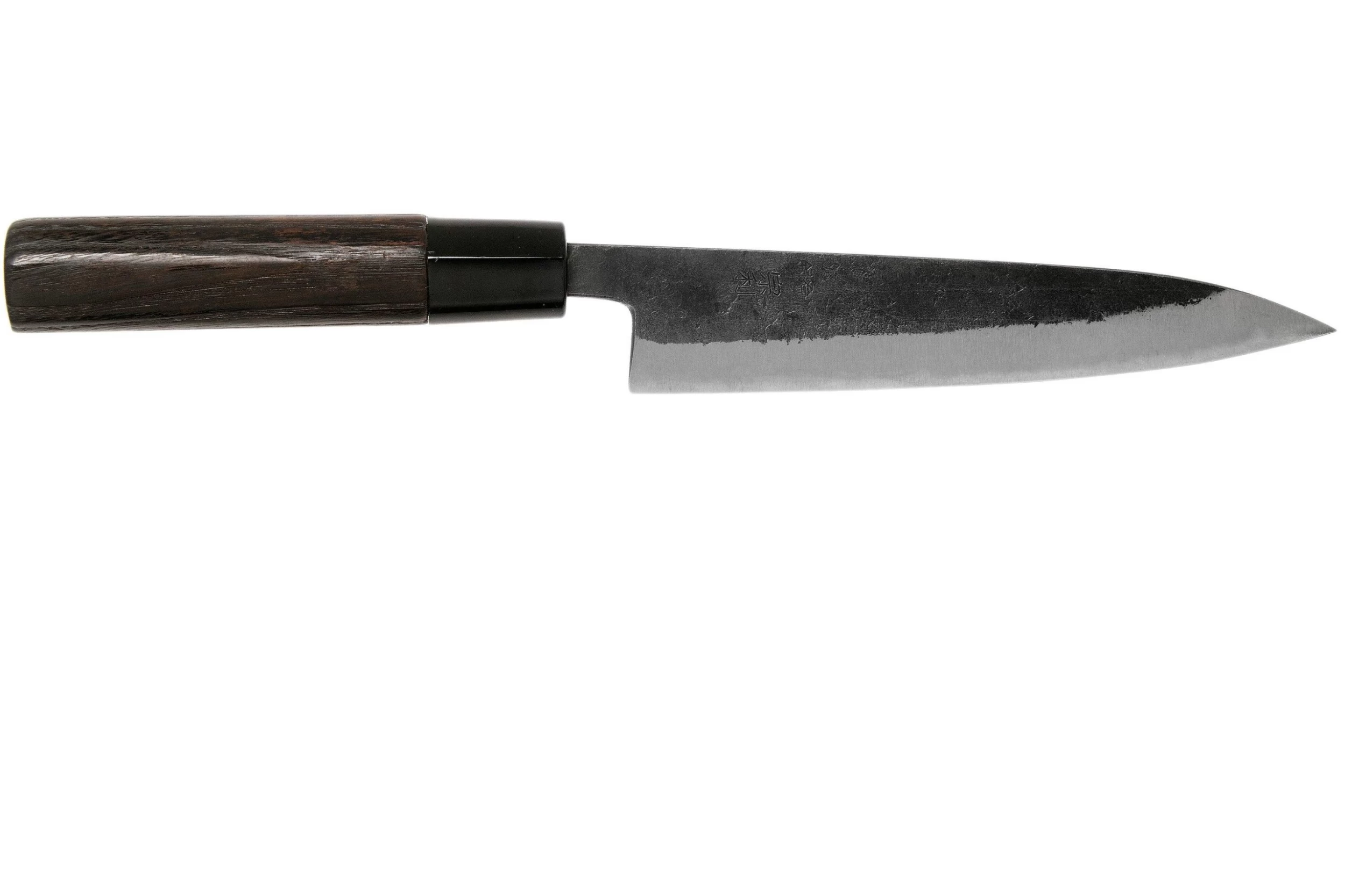 Le Munetoshi Nashiji Black Petty 15 cm est un couteau de cuisine japonais élégant et fin. Petty signifie petit en japonais, et il s’agit de la version japonaise du célèbre couteau d’office. Ce type de couteau de cuisine convient pour les petites tâches de coupe. Comme, par exemple, l’épluchage d’un fruit ou une petite coupe précise. Tout ce qu’un gros couteau de cuisine ne peut pas faire.