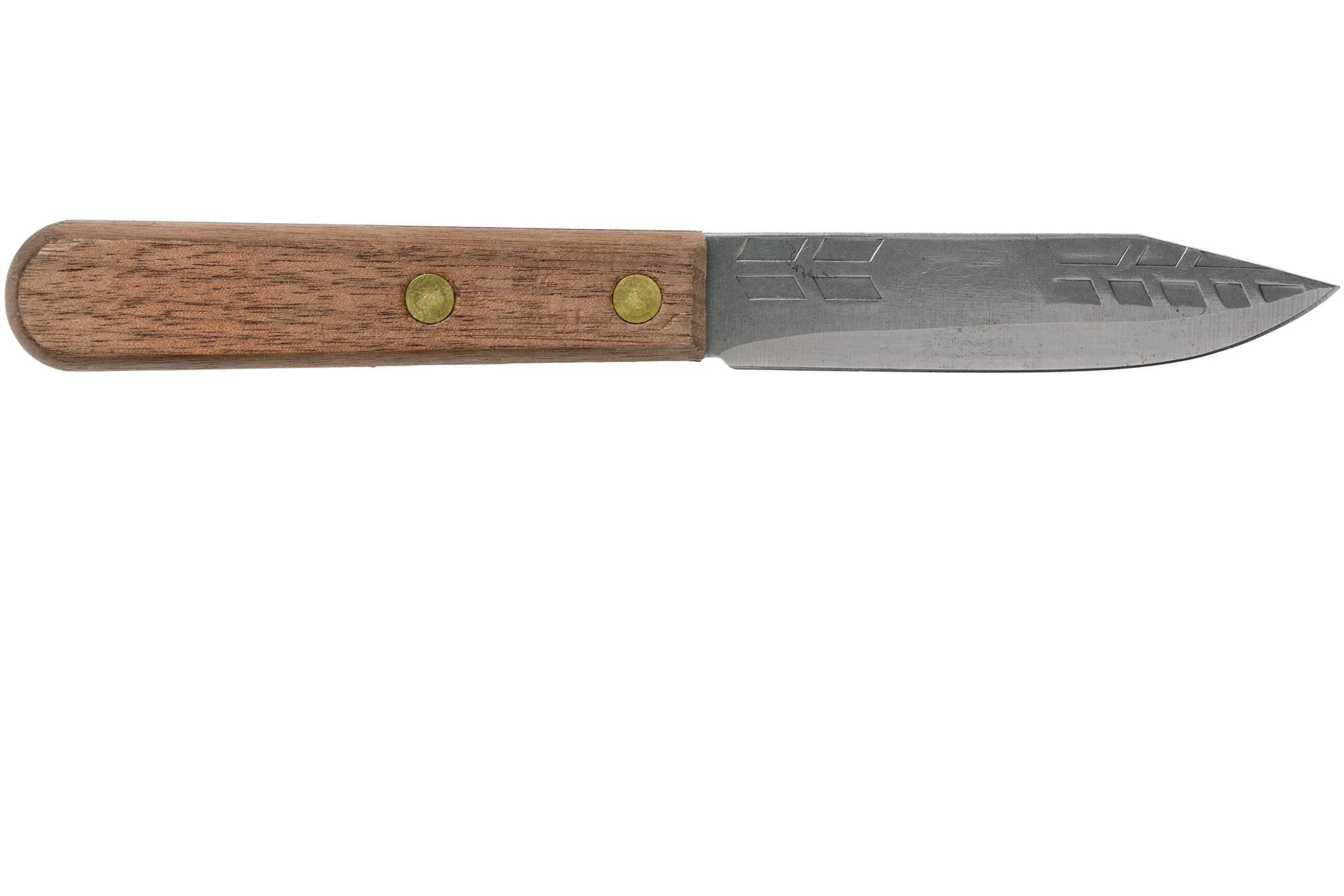 Ce couteau d’office Ontario Old Hickory a une lame de 8 cm. Une lame plutôt modeste, avec une forme qui rappelle un kiritsuke. Il convient pour toutes sortes de tâches : couper les légumes, la viande, le poisson. Le profil tanto inversé de la lame kiritsuke apporte une très grande agilité de la pointe mais aussi beaucoup de fragilité. Attention : ce couteau n’est pas adapté à la coupe des os et arêtes.