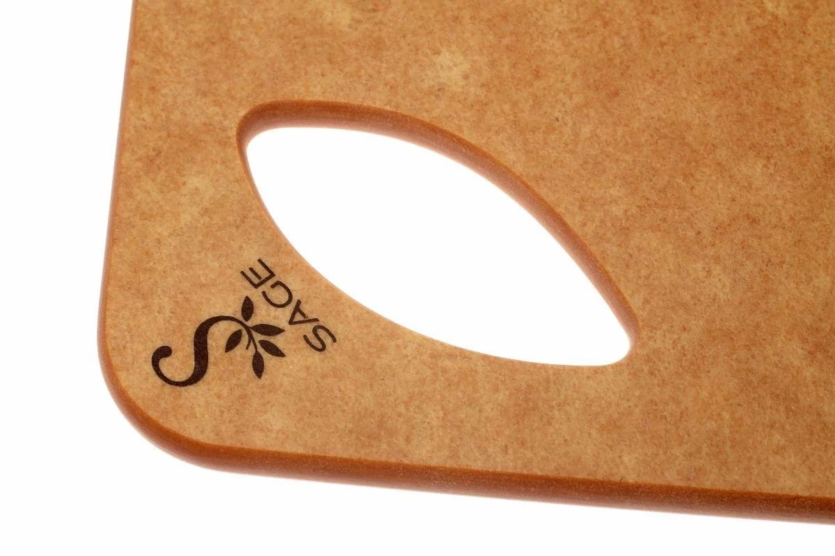 Les planches à découper de Sage sont faits d’une combinaison de bois certifié FSC, de pulpe et de résine. Il en résulte une planche à découper mince avec une surface lisse, non poreuse, résistante à la chaleur et surtout hygiénique. Grâce à cela, elles rencontrent la norme HACCP qui règle les questions de sécurité alimentaire. Elles peuvent donc servir dans un environnement professionnel. Le matériau est assez mou pour ne pas de compromettre le tranchant du couteau, mais assez dur pour éviter les rayures profondes. Selon Sage, ces planches durent minimums 2 fois plus longtemps qu’ une planche de bois. En outre, elles sont relativement légères et elles ne changent guère la hauteur du plan de travail.