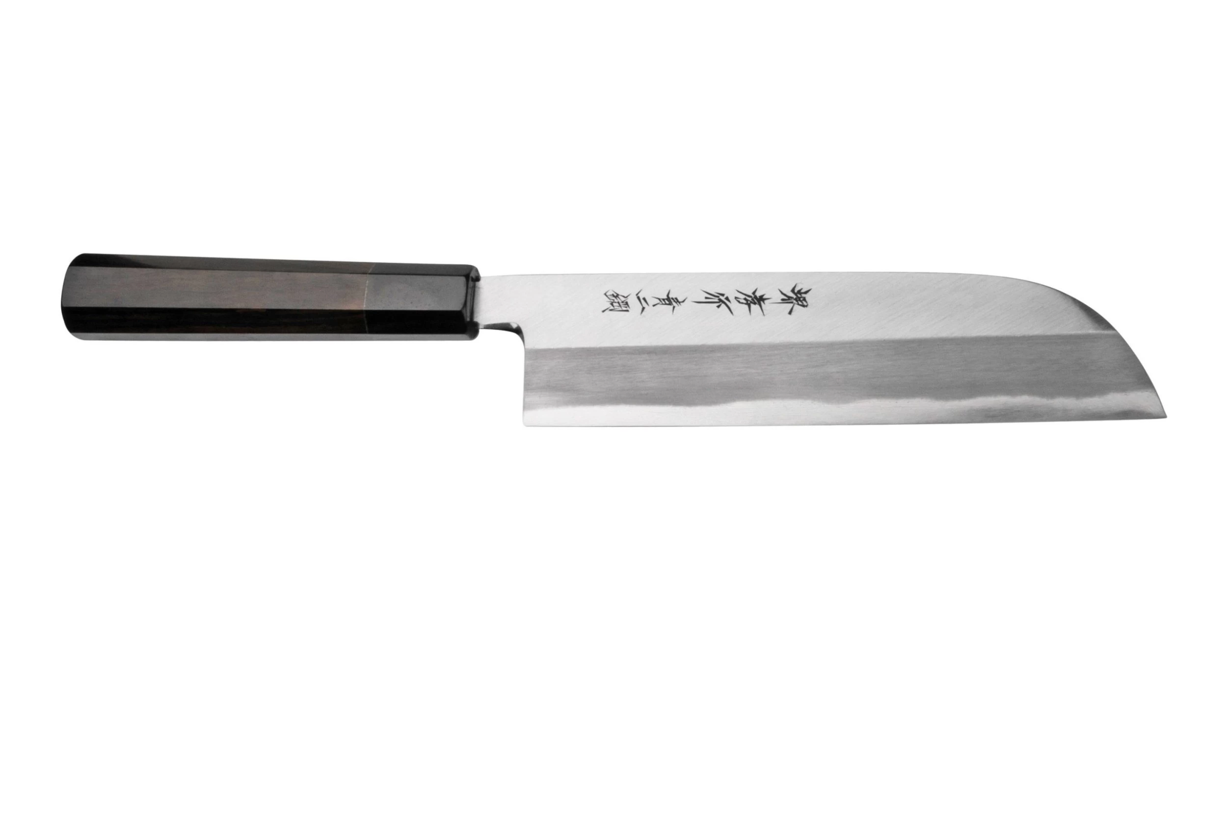 Le kamagata usuba Sakai Takayuki Blue 2 Steel Japanese Style 01255 est un gros couteau à légumes japonais élégant. Ce kamagata usuba a une forme de lame particulière, où le dos de la lame s’arrondi vers la pointe. On dirait donc un mélange entre un santoku et un nakiri. Nous ne pouvons pas expliquer cet arrondi, mais ce couteau est parfait pour couper de fines tranches de viande, de poisson et de légumes.