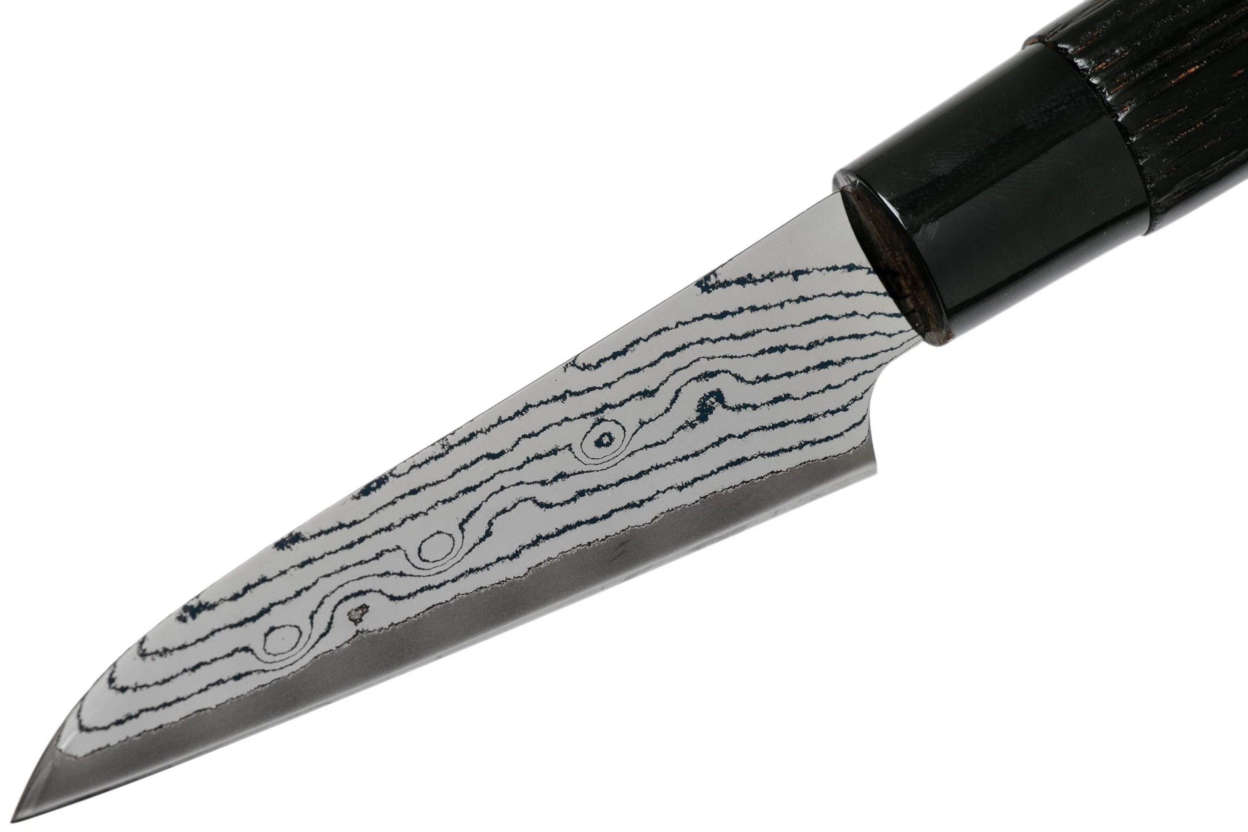 Le couteau d’office Tojiro Shippu Black damascus (Petty) 9 cm est modeste, tranchant et pratique. Le Petty est la version japonaise du couteau d’office européen. La lame de 9 cm de longueur est parfaite pour les petits travaux de coupe. La coupe droite permet d’utiliser ce couteau pour toute autre tâche de préparation culinaire.