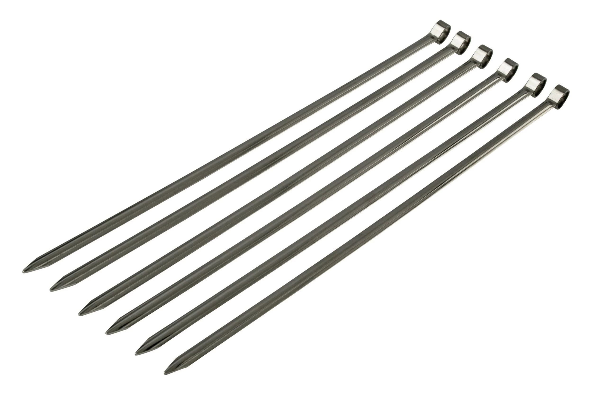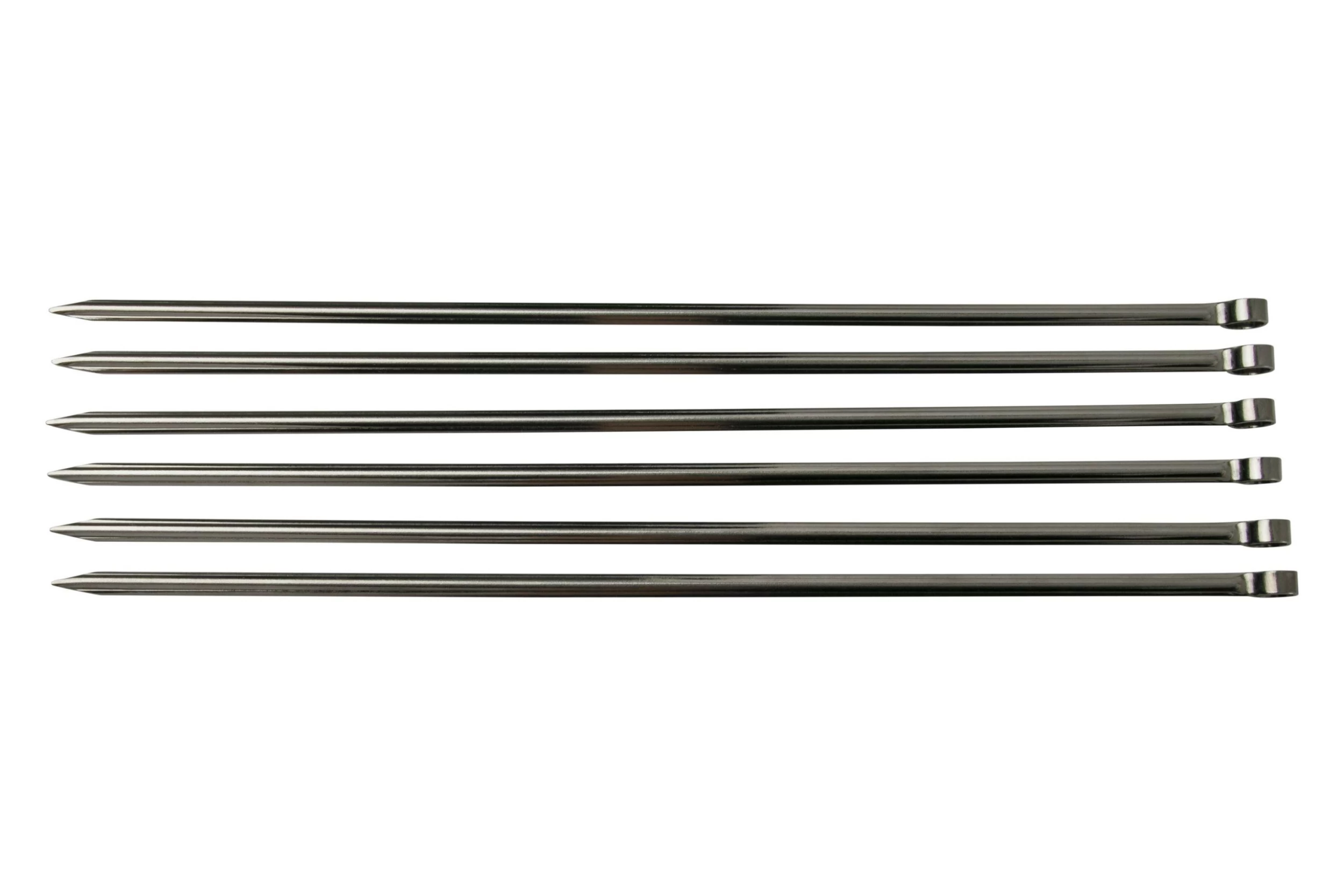 Ces pics à brochettes 40 cm Tramontina Churrasco sont 6 pics en acier longs, indispensables pour votre barbecue. Ils ont une forme de V. Les ingrédients restent ainsi mieux en place. Même si vous retournez les brochettes. Leur longueur les rend parfaits pour griller de gros morceaux de viande, de légumes ou de poisson.