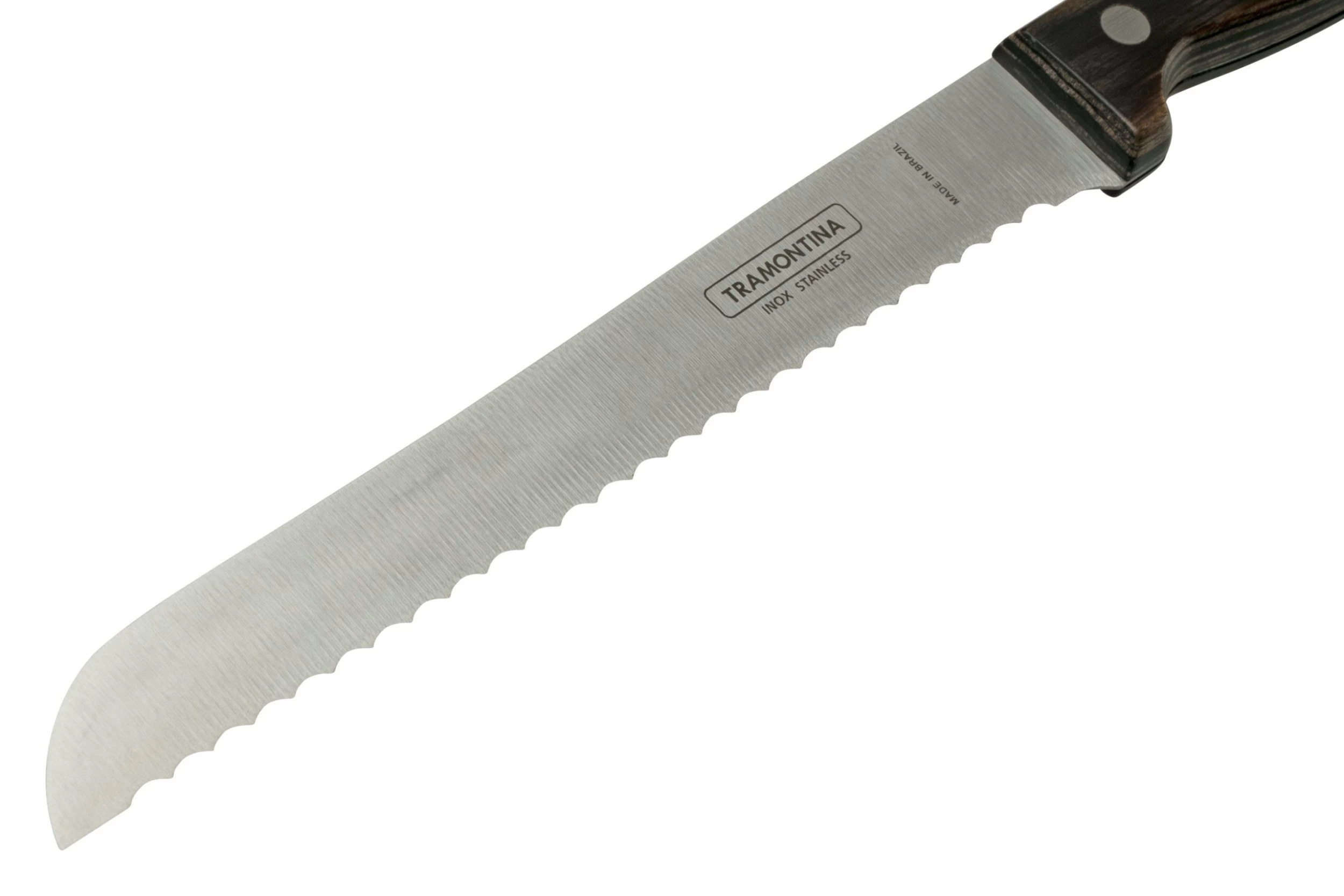 Ce couteau à pain Tramontina Landhaus est un couteau pratique et abordable. Ses dentelures acérées lui permettent de couper toutes sortes de pains. Pains croustillants ou moelleux, gros ou petits. Ce couteau tranche tous les pains. Mais en plus du pain, il peut également servir à couper de grosses courges ou même un ananas. Il est très polyvalent !