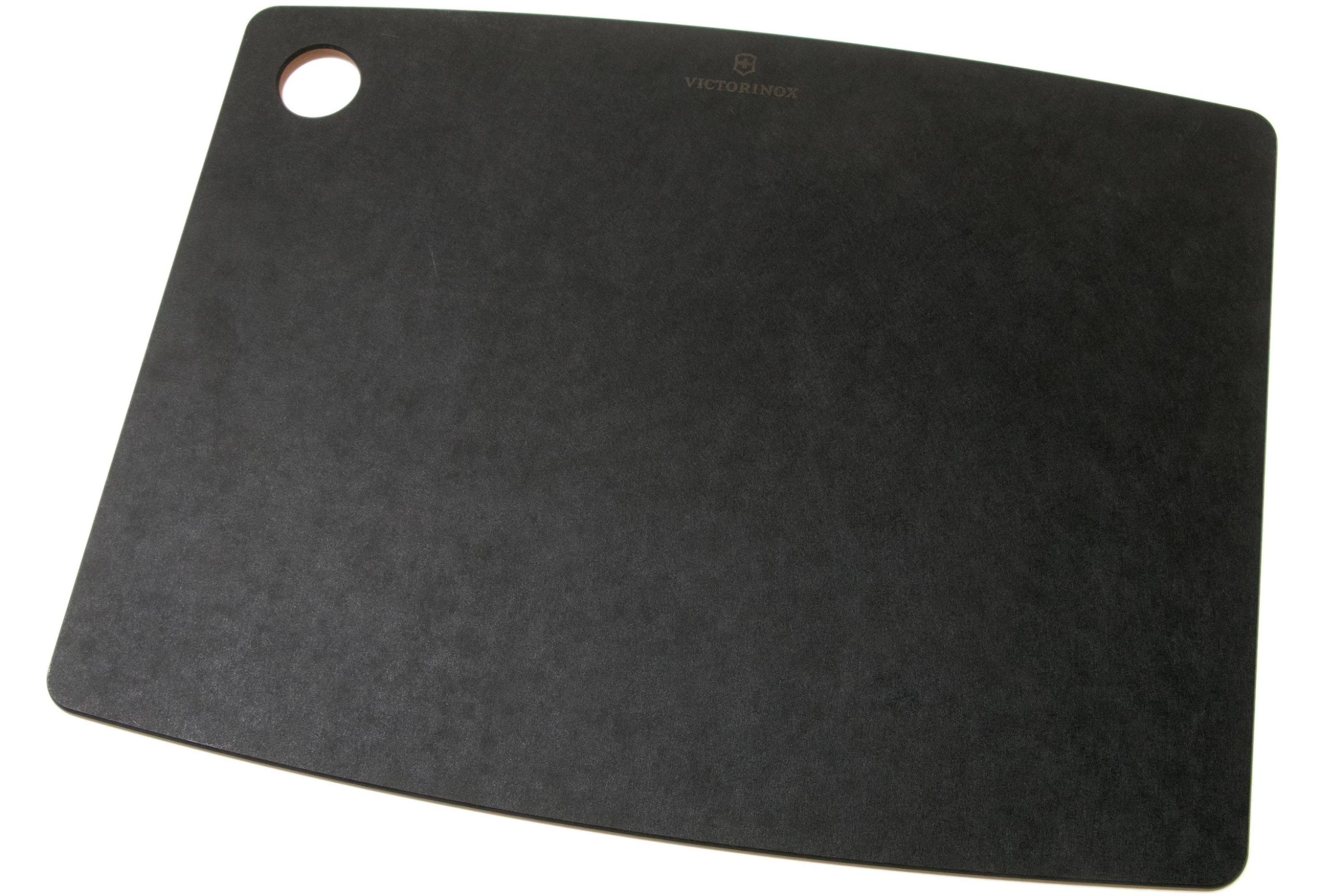 Cette planche à découper noire Victorinox Kitchen fait 36,8 centimètres de long et 28,5 centimètres de large. La planche à découper est en fibres de bois. Un matériau respectueux de l’environnement. La planche est incroyablement durable et peut supporter jusqu’à 175 degrés Celsius. Elle peut donc aller au lave-vaisselle ! La planche arbore une « tranchée » brune où vont se recueillir les miettes et l’humidité, par exemple. Ainsi, votre plan de travail reste propre et sec.