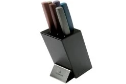 Le bloc de 6 couteaux de cuisine Victorinox Swiss Modern est un pratique et élégant et convient à toutes les cuisines. Fabriqué en bois de hêtre laqué noir, ce bloc est très moderne. Les manches de couteaux de différentes couleurs apportent une touche de fraîcheur à tout plan de travail. Le fameux logo Victorinox est gravé sur le pied en métal.