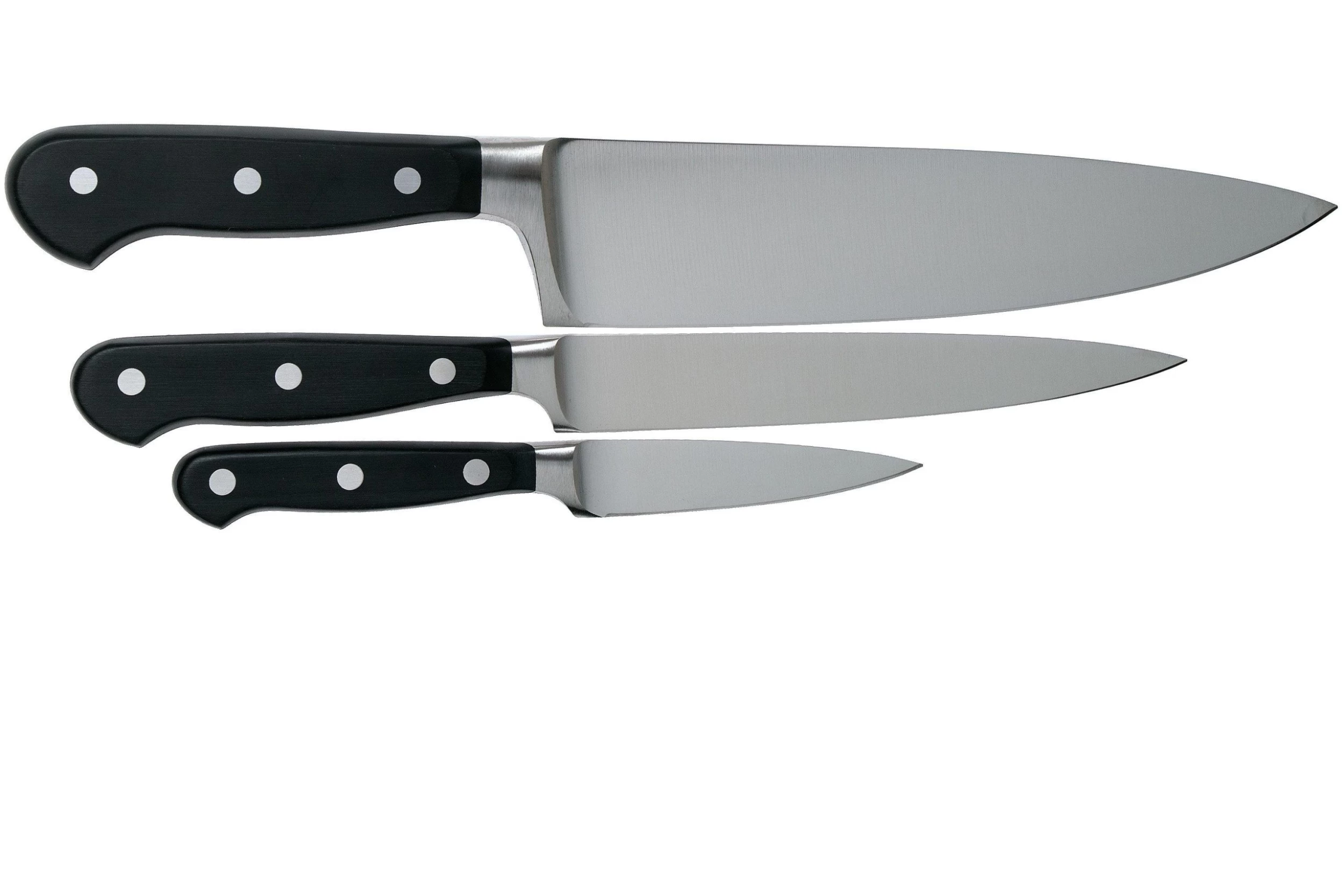 Ce set de couteaux 3 pièces Wüsthof Classic comprend trois couteaux de cuisine versatiles, pour toutes les tâches en cuisine, petites, moyennes et grandes.