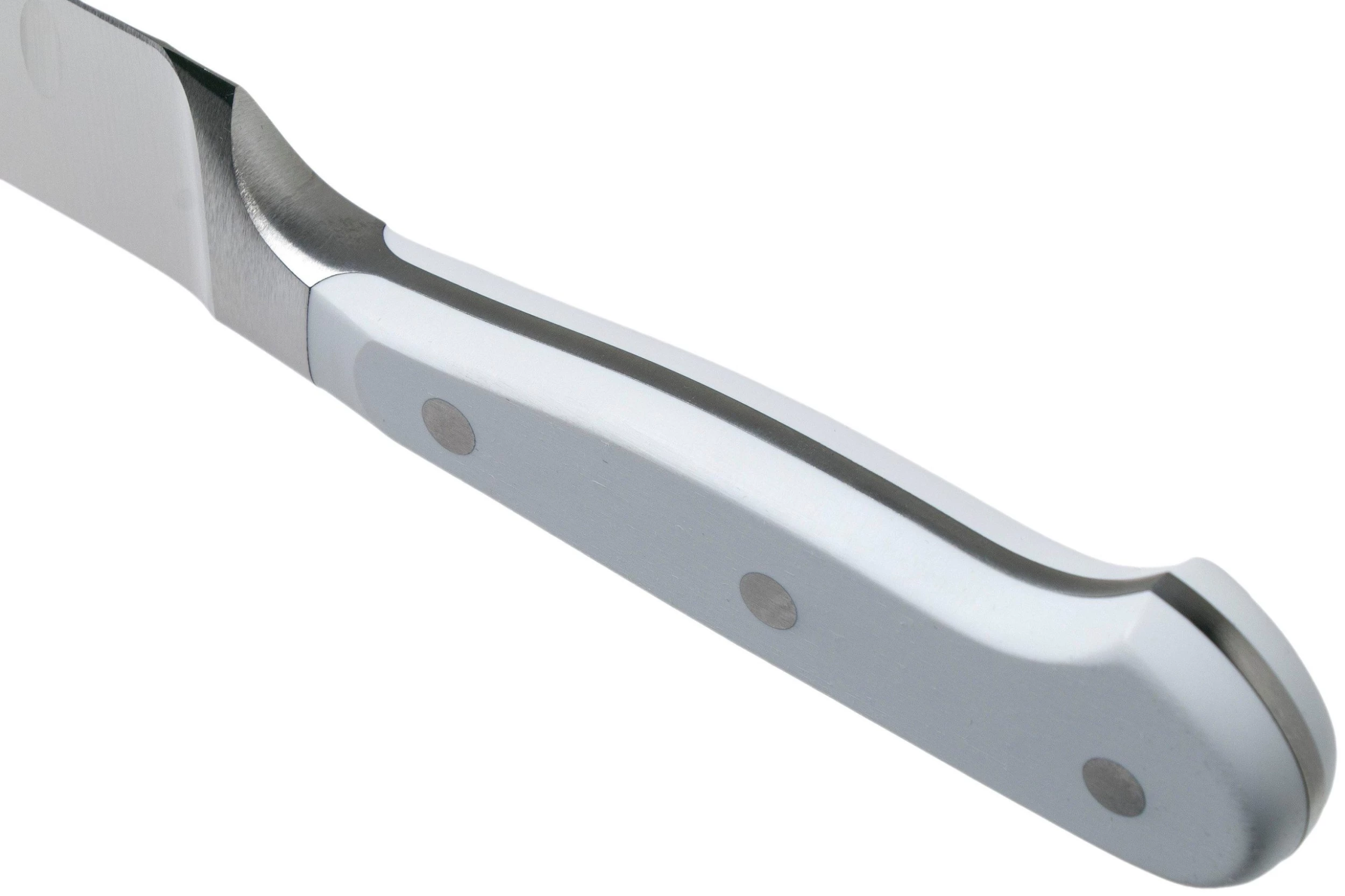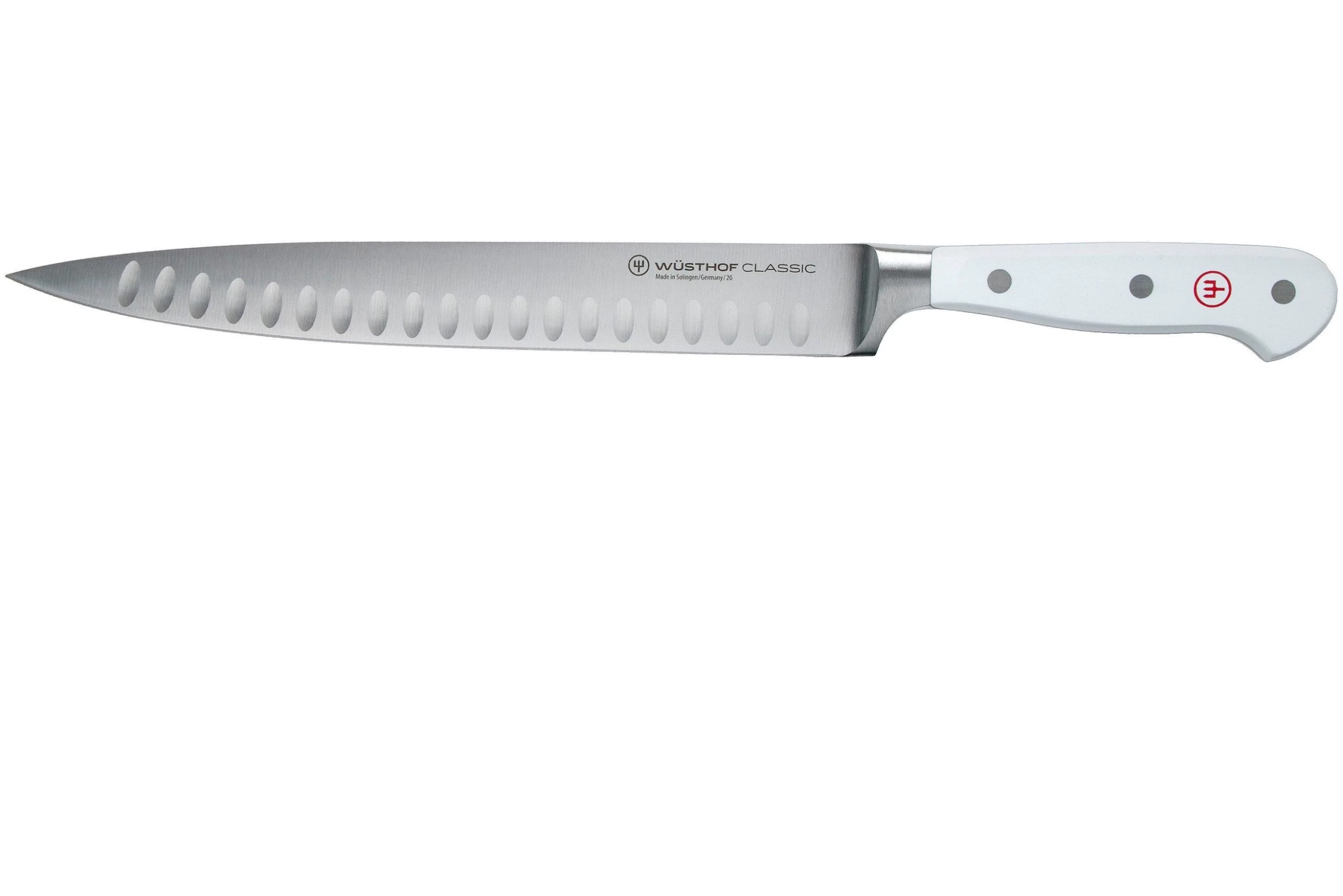 Avec sa lame de 23 cm, ce couteau à trancher la viande Wüsthof Classic White est particulièrement adapté pour couper des morceaux de viande de grande taille. Il tranche facilement un jambon à l’os ou un rôti en tranches fines et régulières. Il est particulièrement maniable grâce à sa lame un peu plus courte. Les alvéoles sur la lame créent une poche d’air qui empêche la viande de venir s’y coller pendant le tranchage.